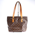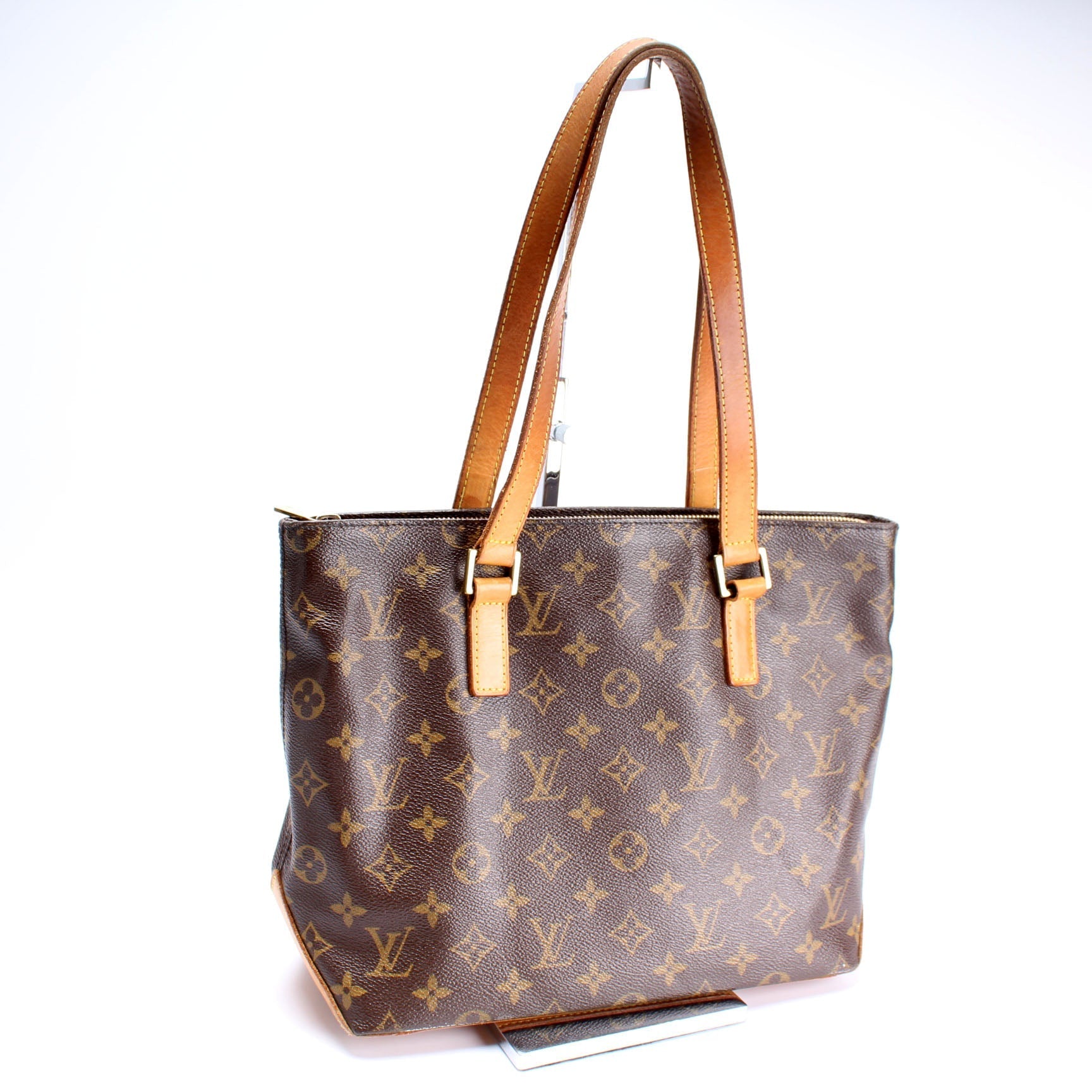 This Louis Vuitton Cabas Pianois eye catching bag. The exterior is in the classic Louis Vuitton Monogram coated canvas.