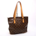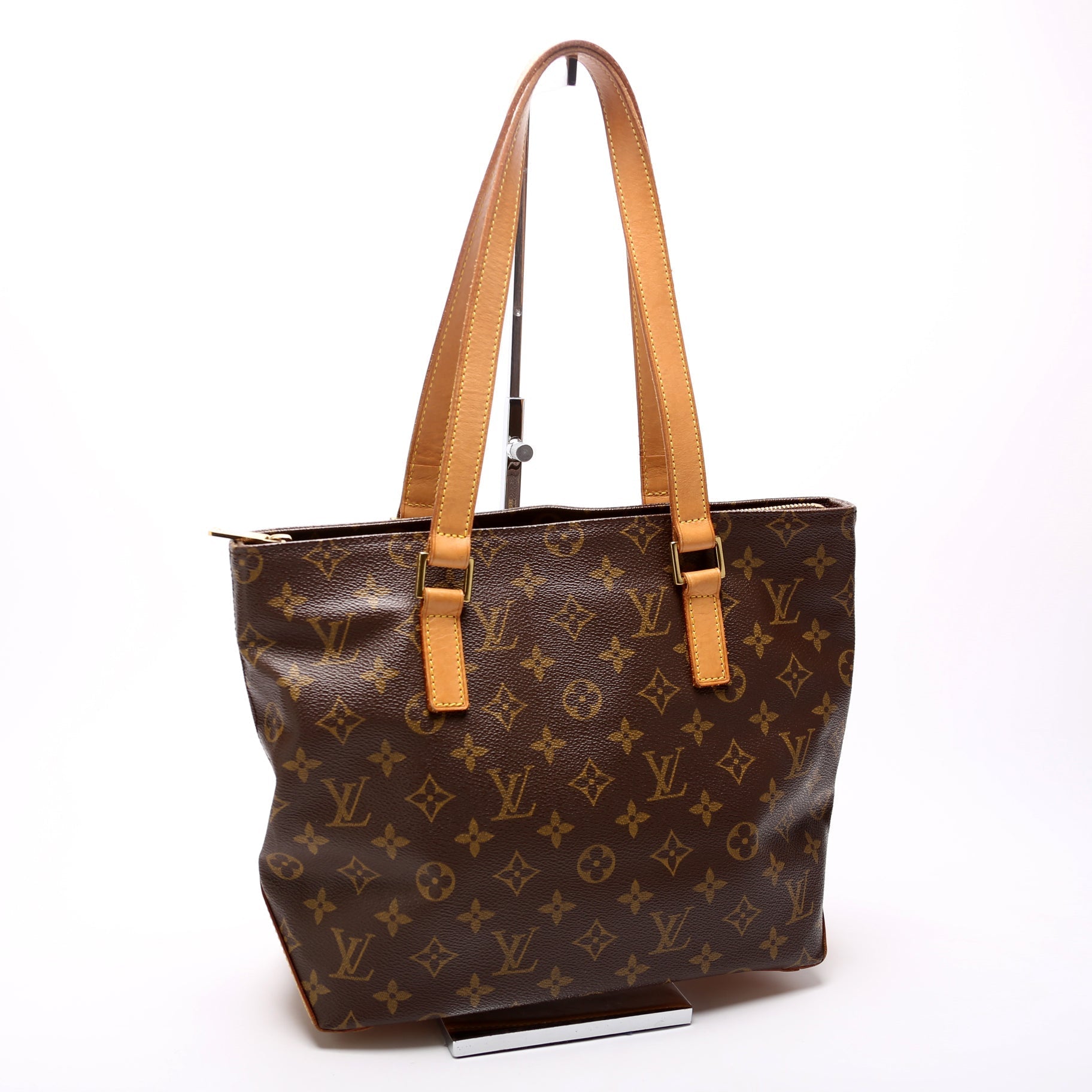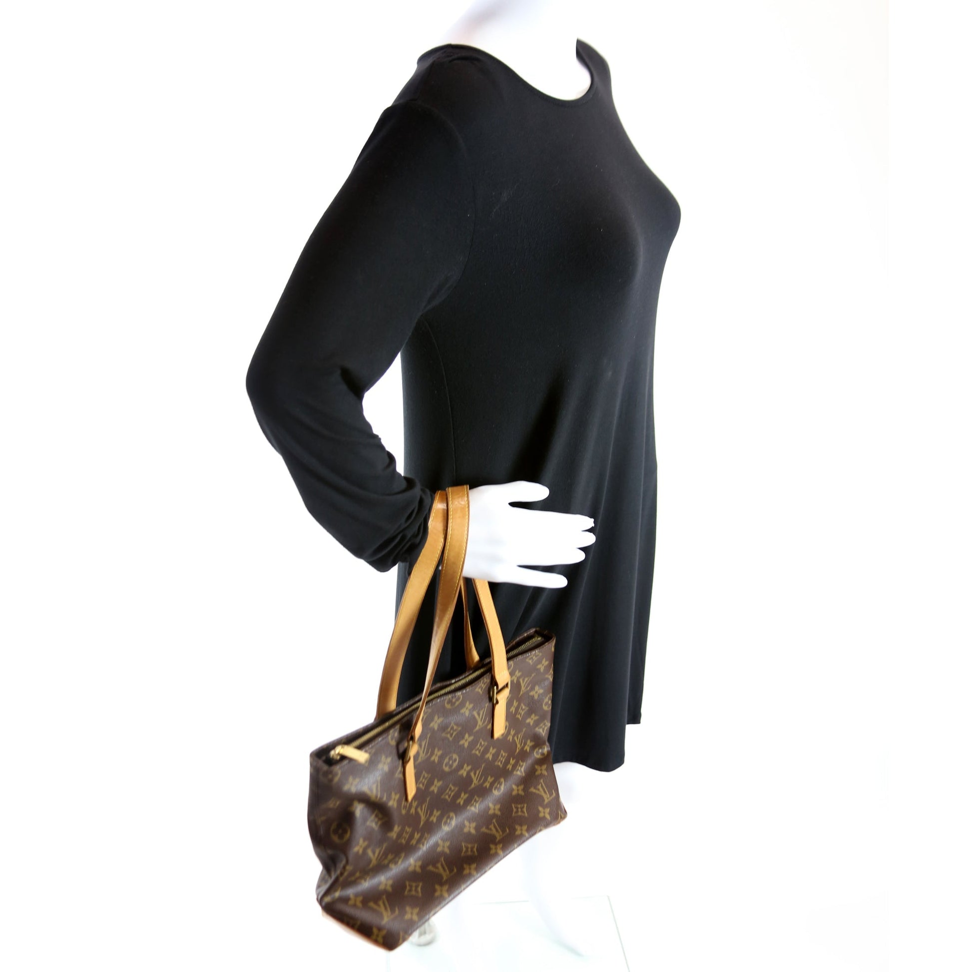 This Louis Vuitton Cabas Pianois eye catching bag. The exterior is in the classic Louis Vuitton Monogram coated canvas.