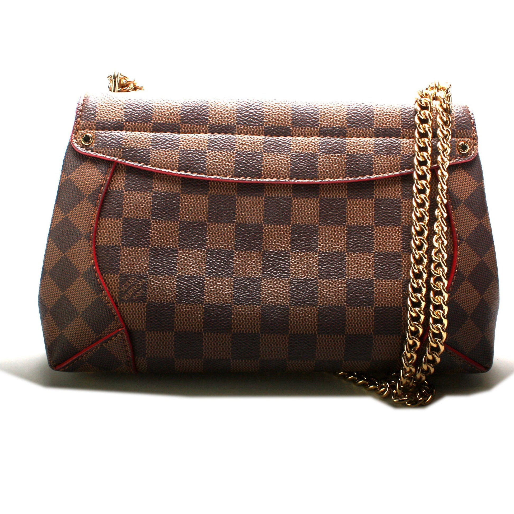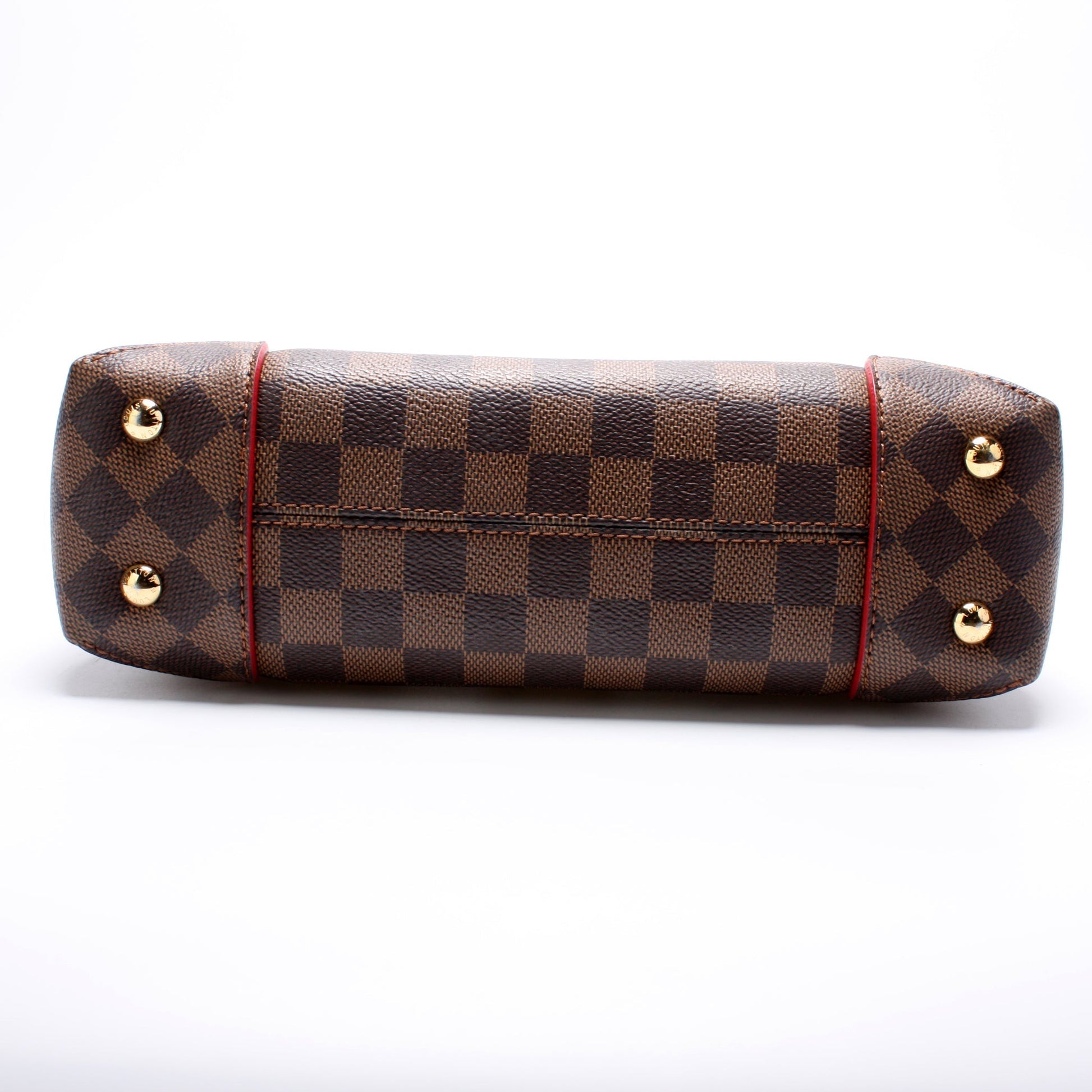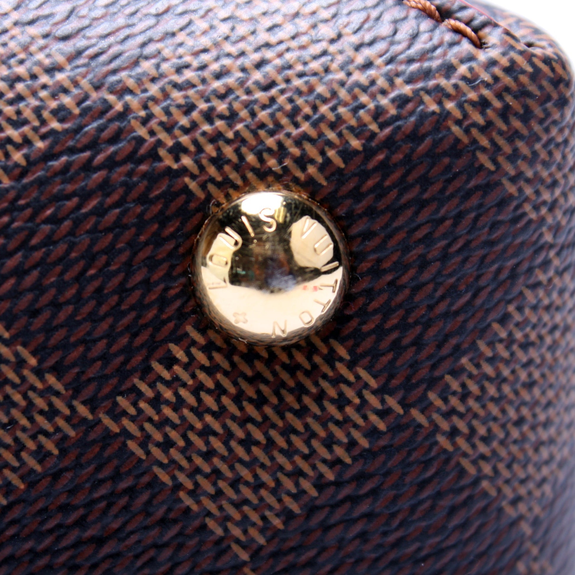 This Louis Vuitton Caissa Tote MM is guaranteed 100% authentic. The exterior is in the classic Louis Vuitton Damier Ebene coated canvas.