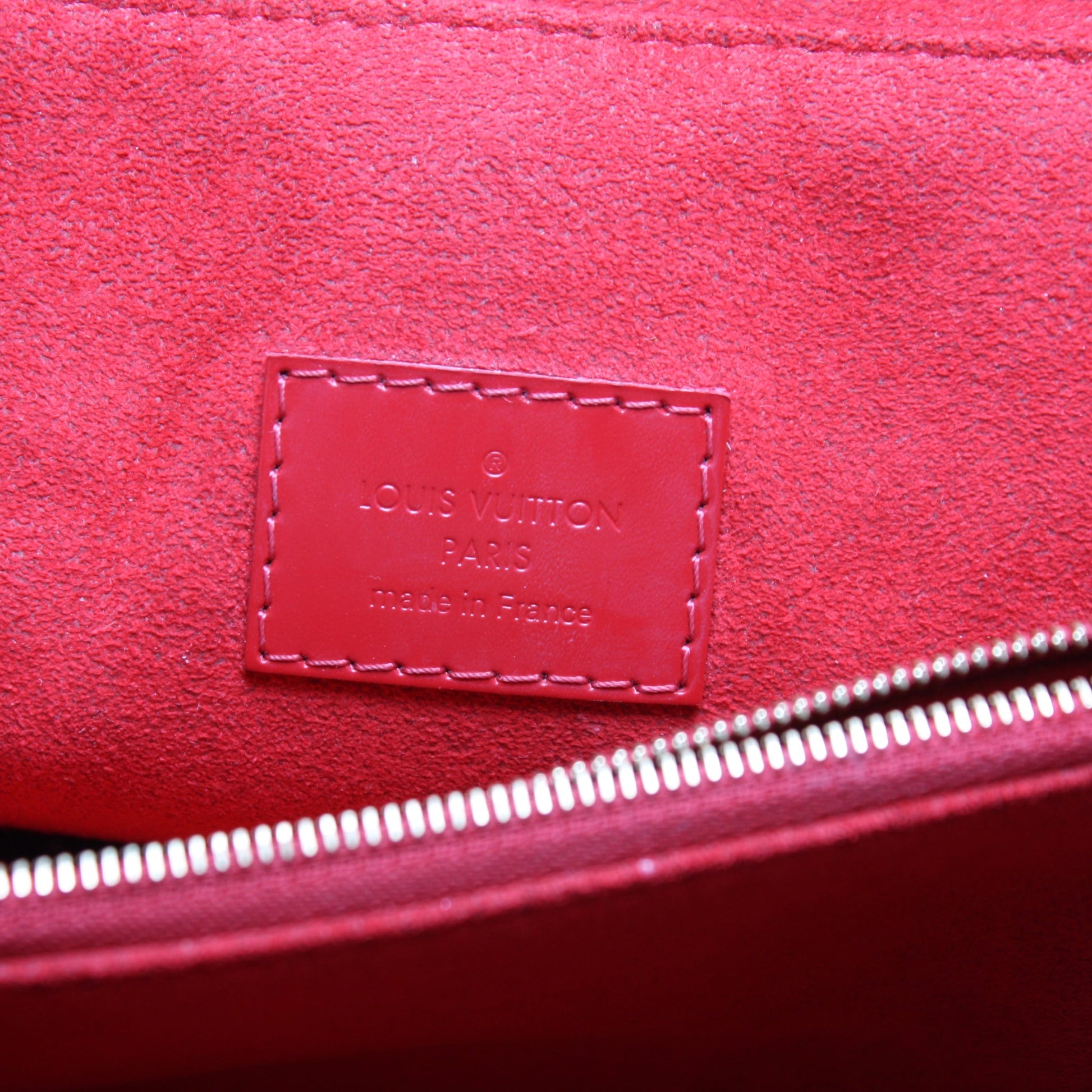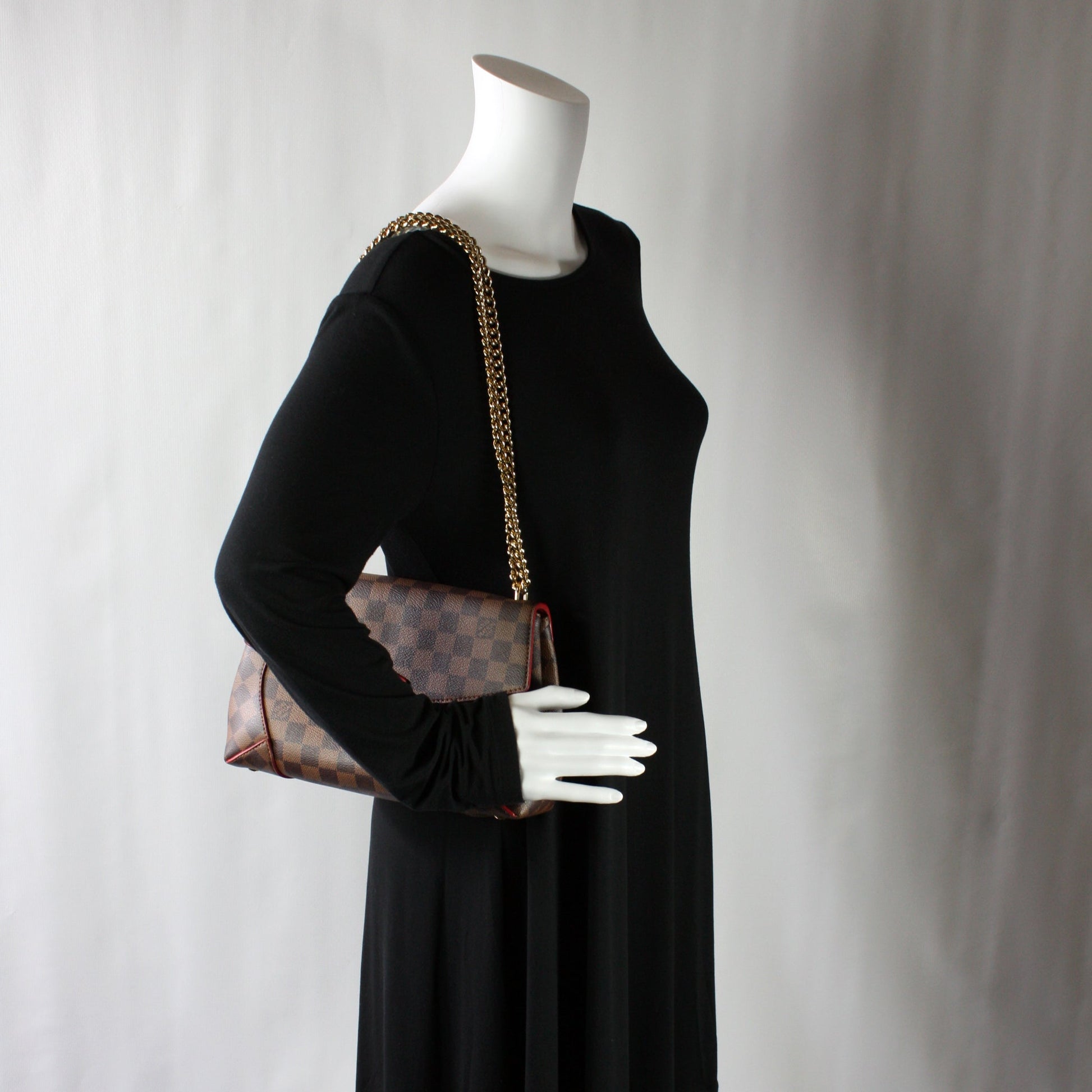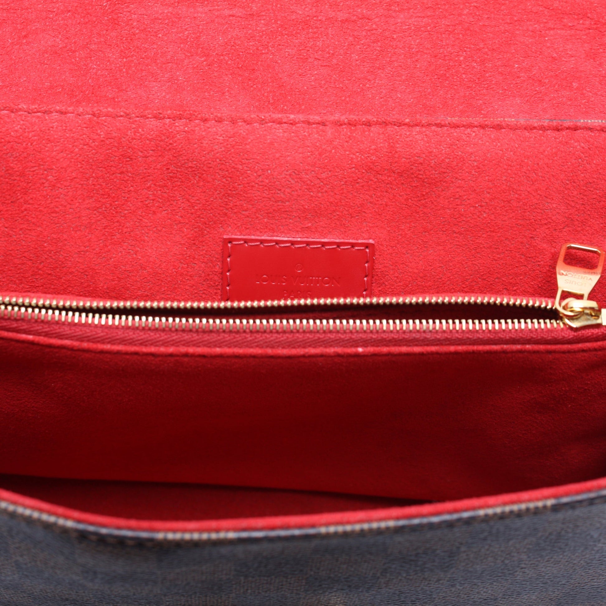 This Louis Vuitton Caissa Tote MM is guaranteed 100% authentic. The exterior is in the classic Louis Vuitton Damier Ebene coated canvas.