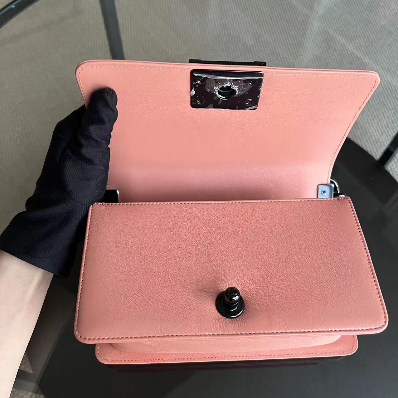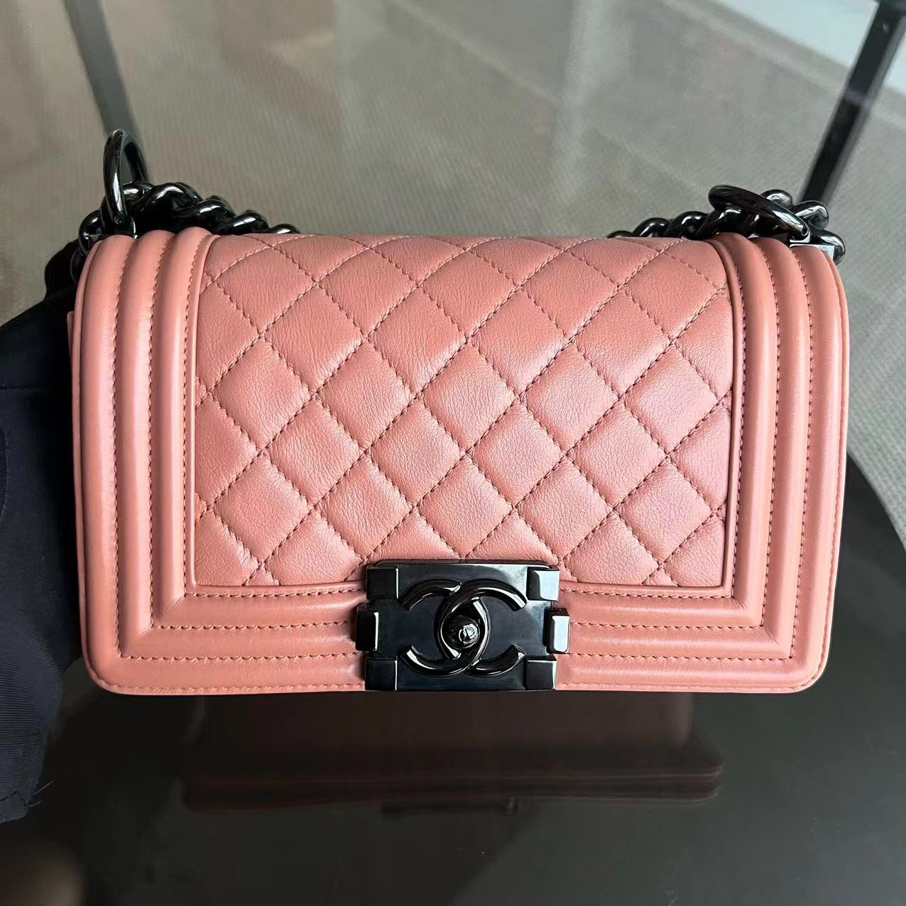 Calfskin Boy Small Quilted Coral Blush Black Hardware Series 25