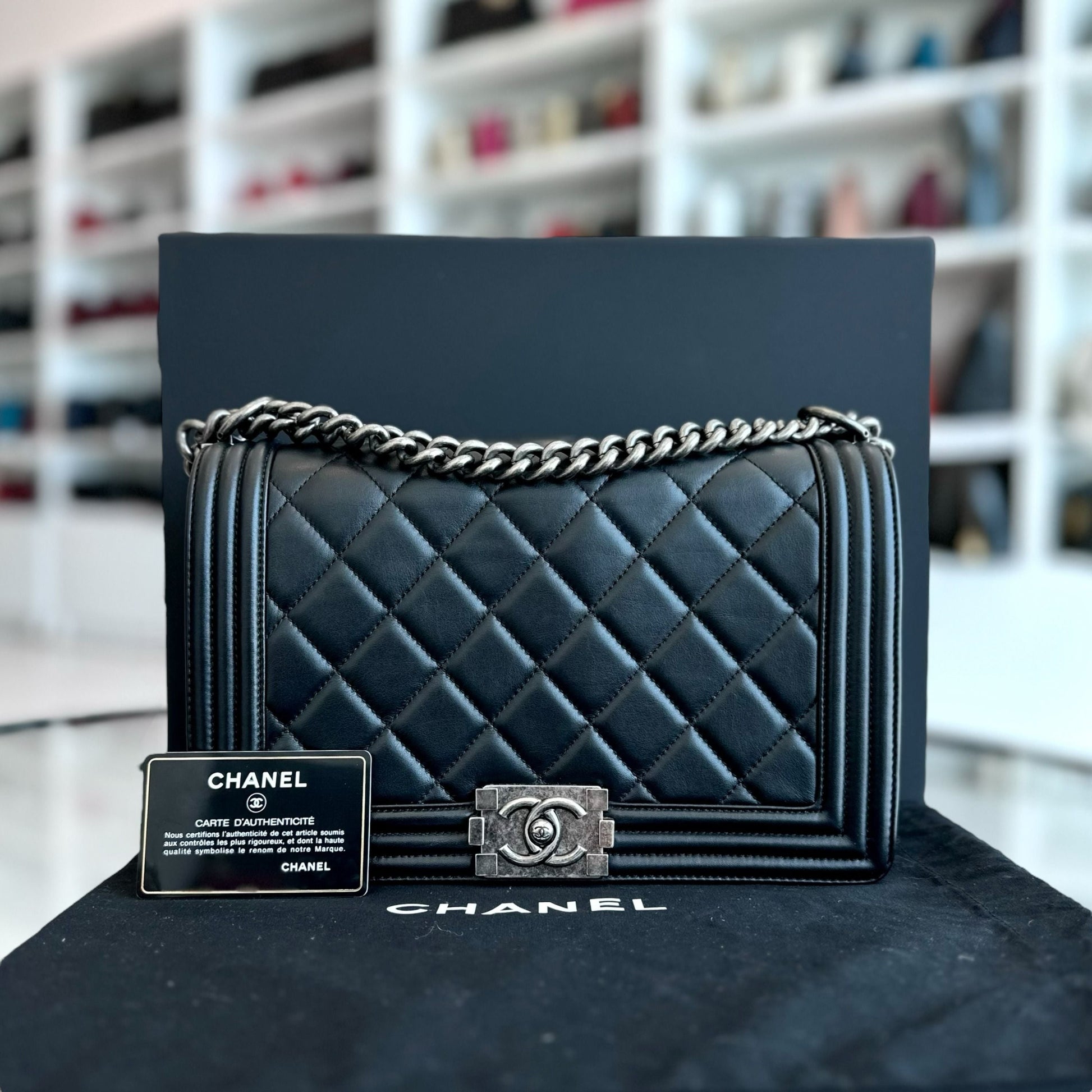 *Calfskin* Boy New Medium Smooth Calfskin 28CM Leboy Black RSHW No 19
