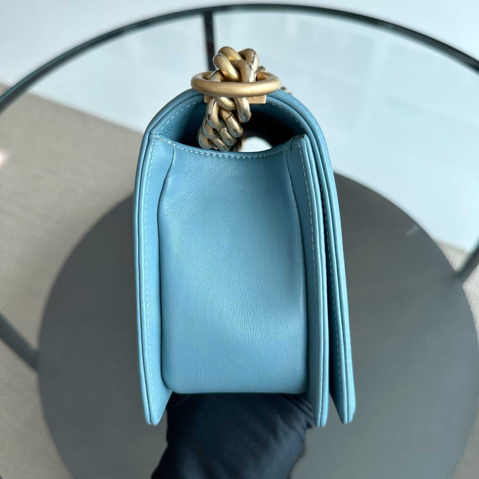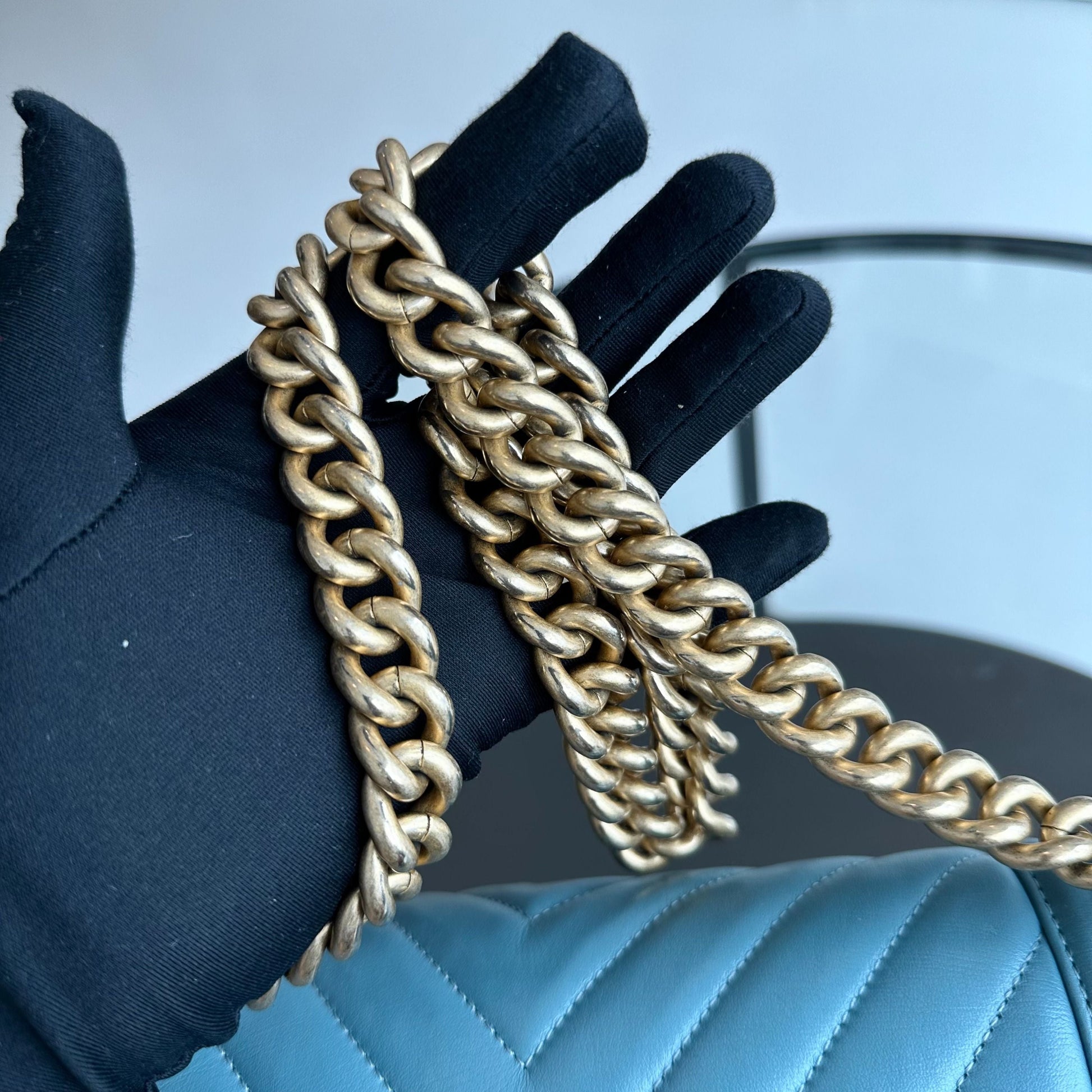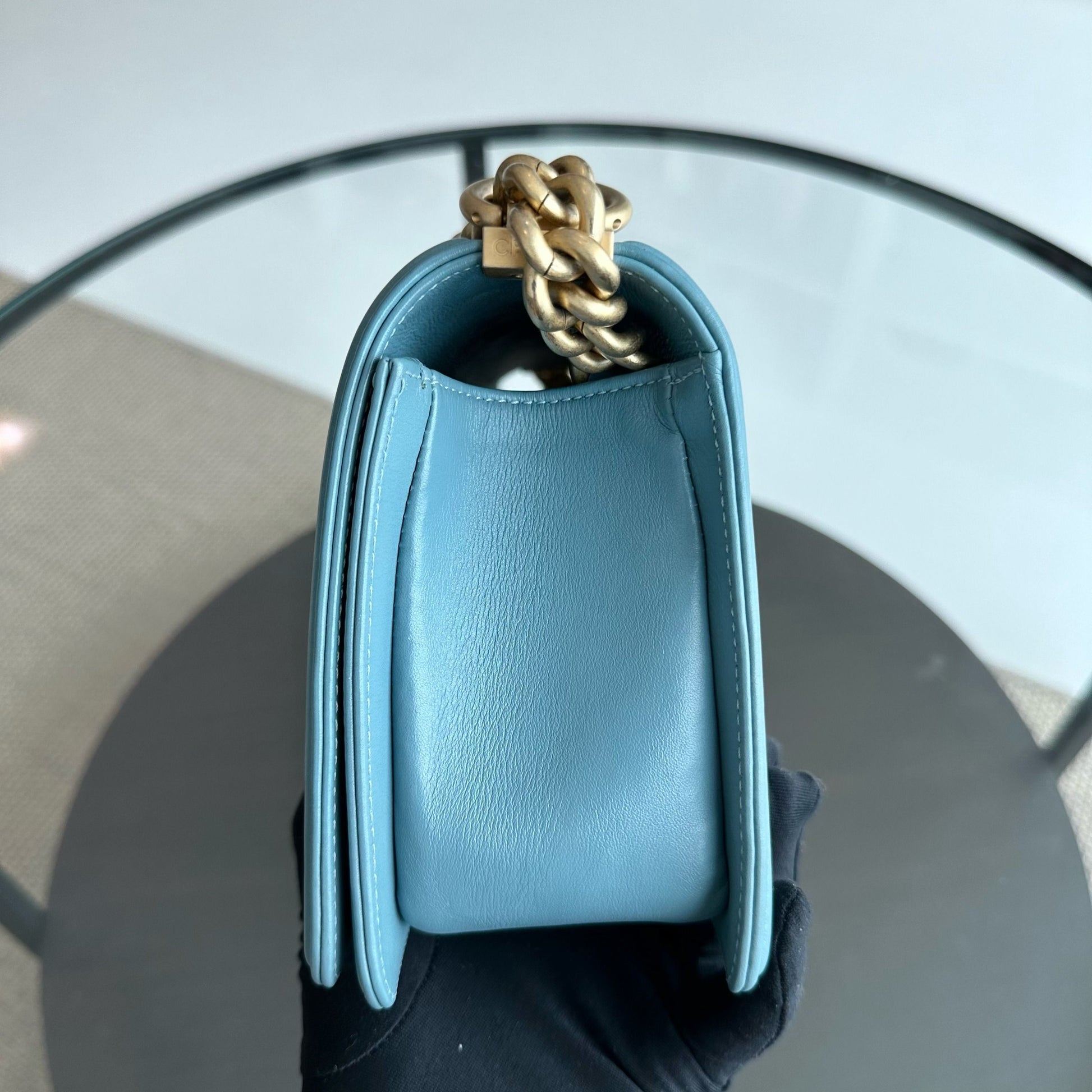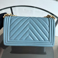 *Calfskin* Boy Old Medium 25CM Calfskin Chevron Leboy Baby Blue GHW No 25