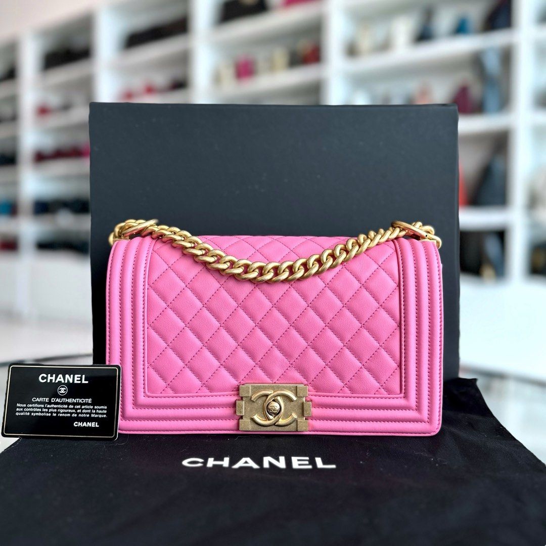 *Calfskin* Boy Old Medium Quilted Smooth Calfskin Pink AGHW No 26