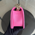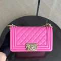 *Calfskin* Boy Small 20CM Quilted Calfskin Sakura Pink Leboy Golden Hardware Series 26