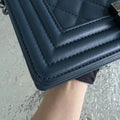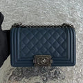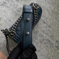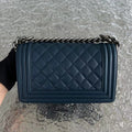 *Calfskin* Boy Small Quilted Calfskin Dark Blue Leboy Ruthenium Silver Hardware Series 26