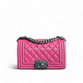 *Calfskin* Chanel Boy Small - Quilted Calfskin Boy Pink Ruthenium Silver Hardware Series 26