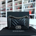 *Calfskin, Like New* Boy Small Chevron Calfskin Leboy Black RSHW No 22
