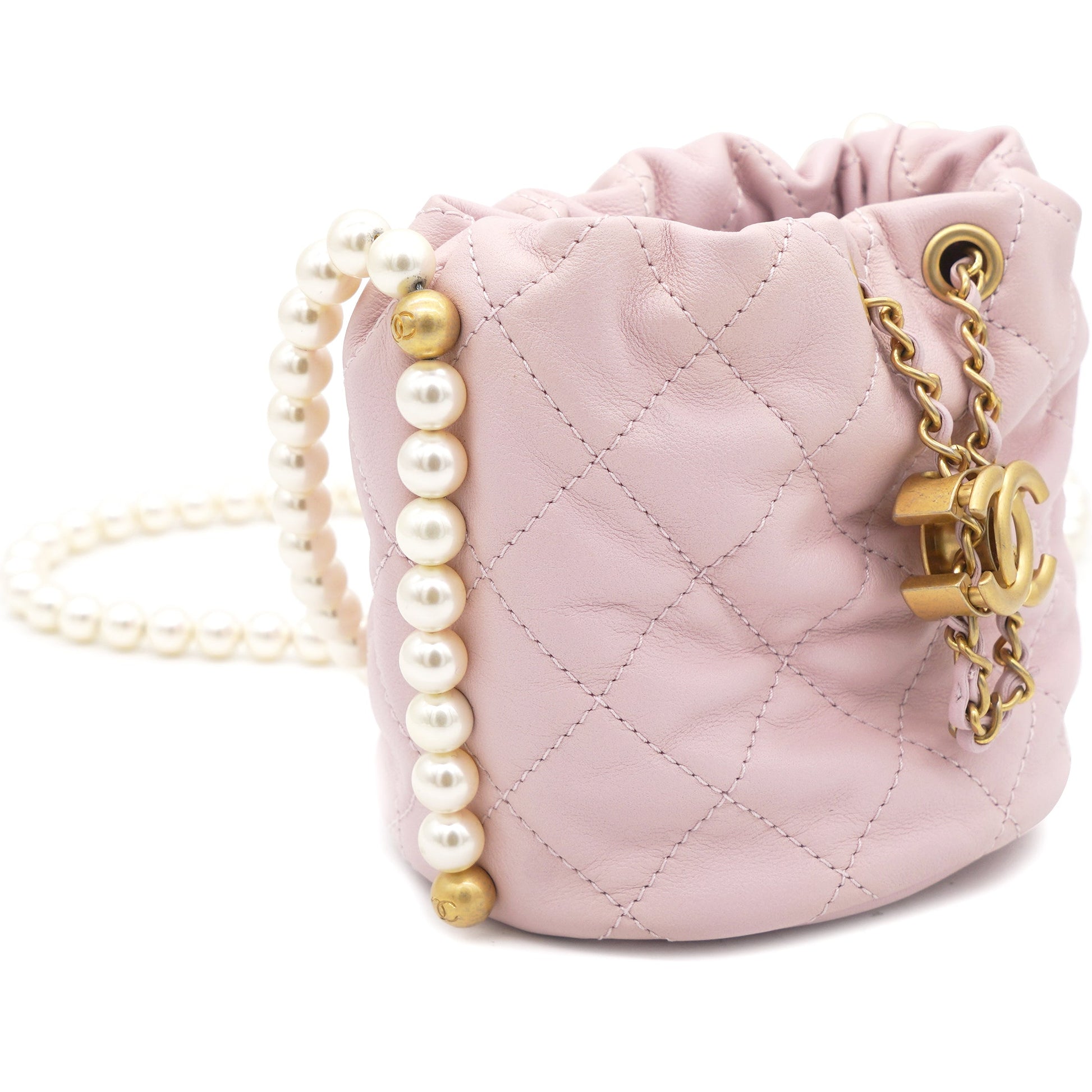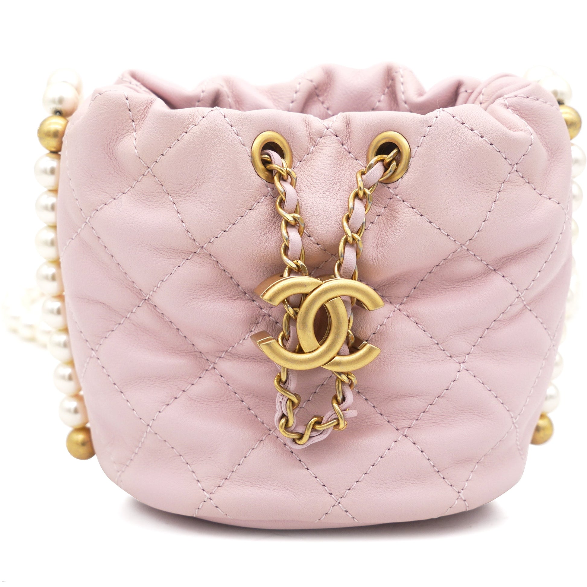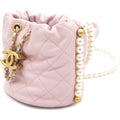 Chanel Calfskin Quilted Pearl Mini About Pearls Drawstring Bucket Light Pink