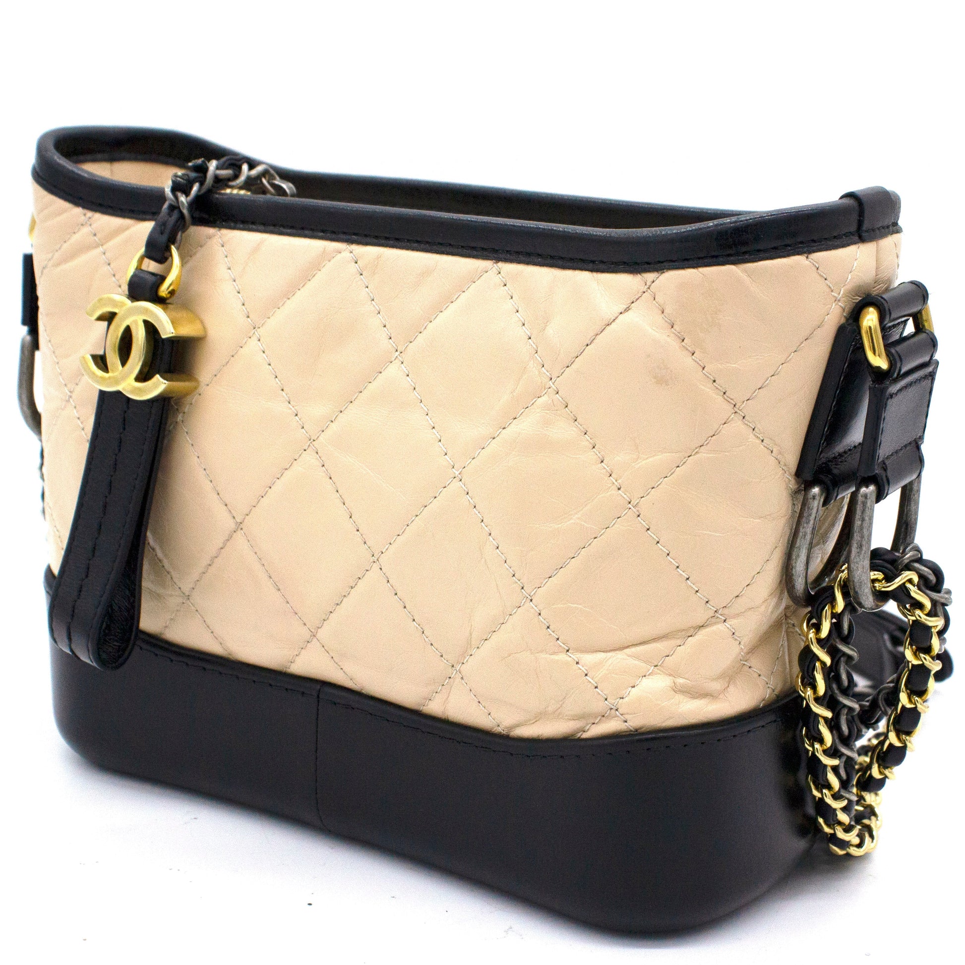 Chanel Calfskin Quilted Small Gabrielle Hobo Black Beige