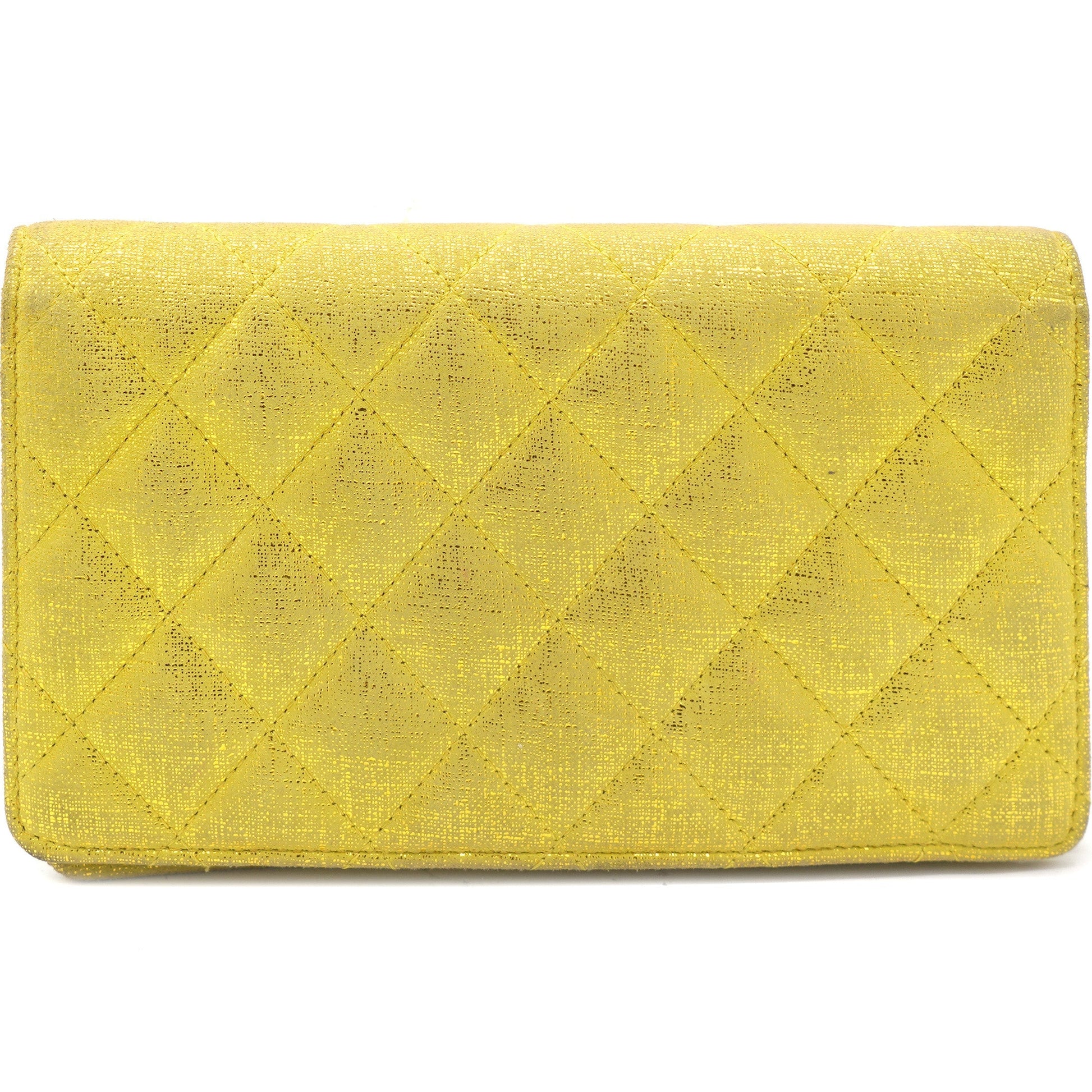 Chanel Calfskin Quilted Yen Wallet Textured Gold