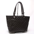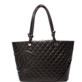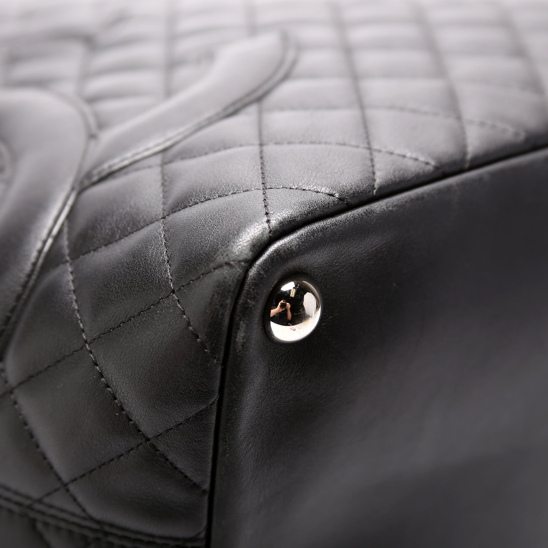 This Chanel Cambon Ligne Large Tote is d 100% . The exterior is in the classic Chanel Calfskin leather.