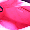 Interior: The interior fabric has minor disocloration. The interior features two zip closure pockets and one open pocket.