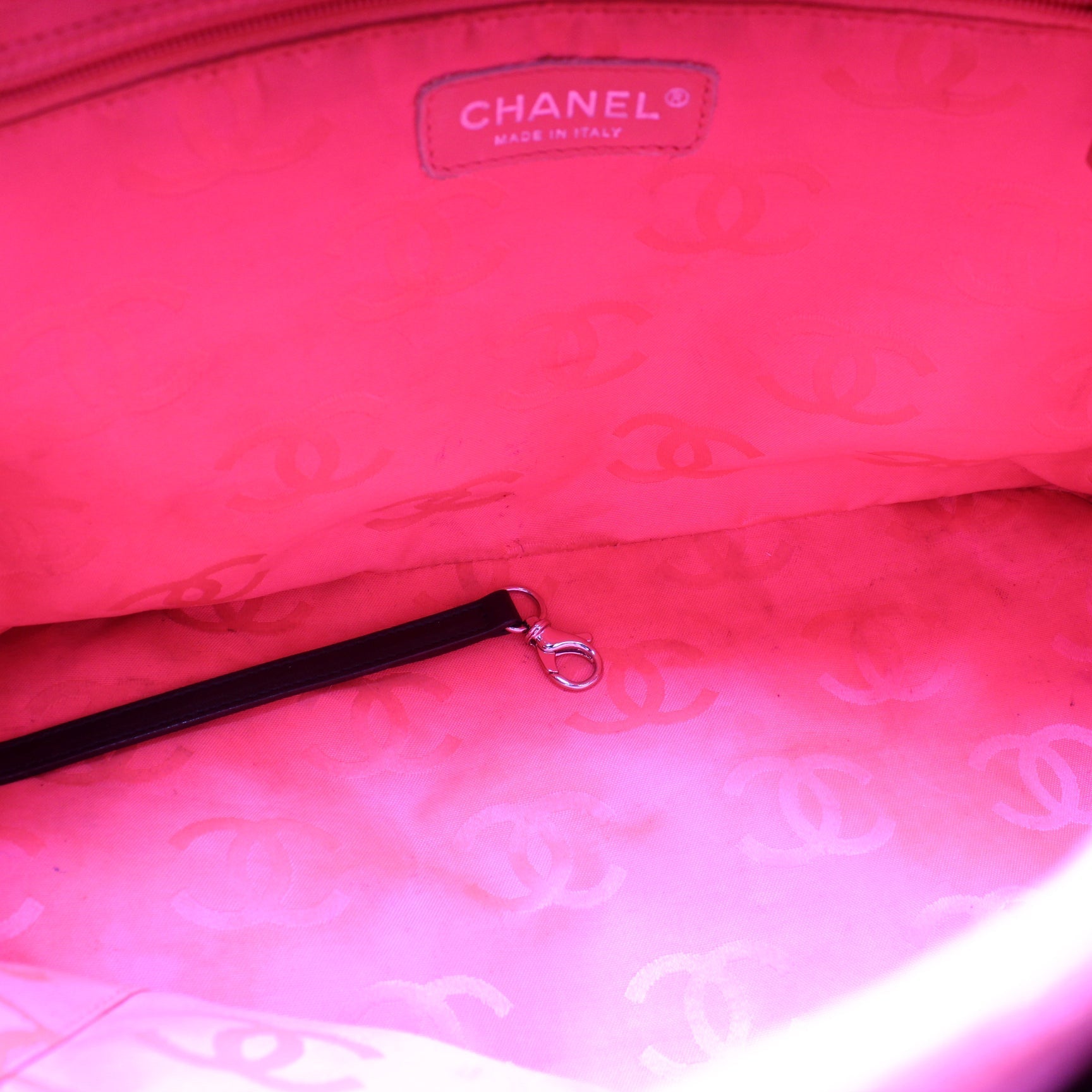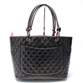 This Chanel Cambon Ligne Large Tote is guaranteed 100% authentic. The exterior is in the classic Chanel Calfskin leather.
