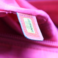 Interior: The interior has discoloration throughout the material. The interior features two zip closure pockets, one open pocket, and two pen holders.