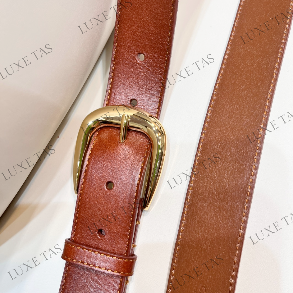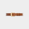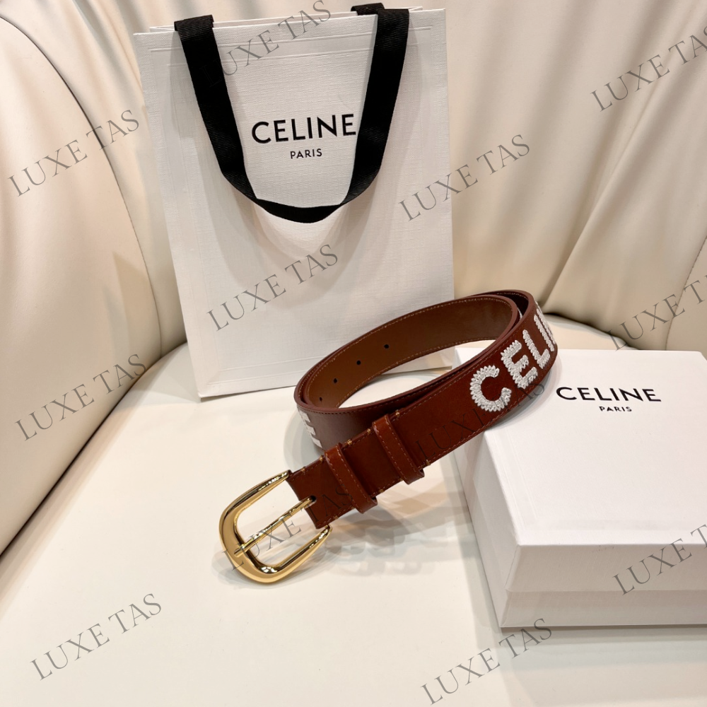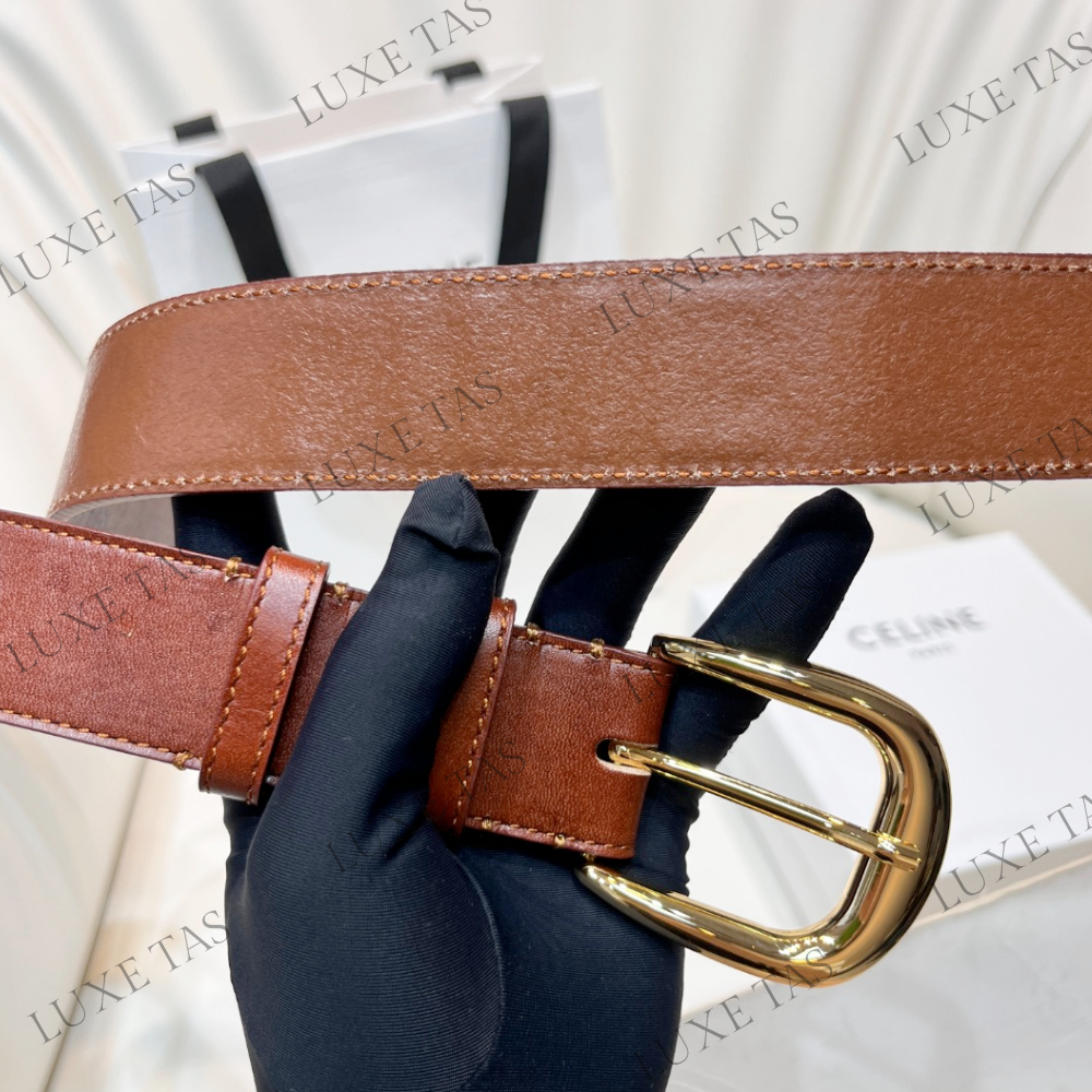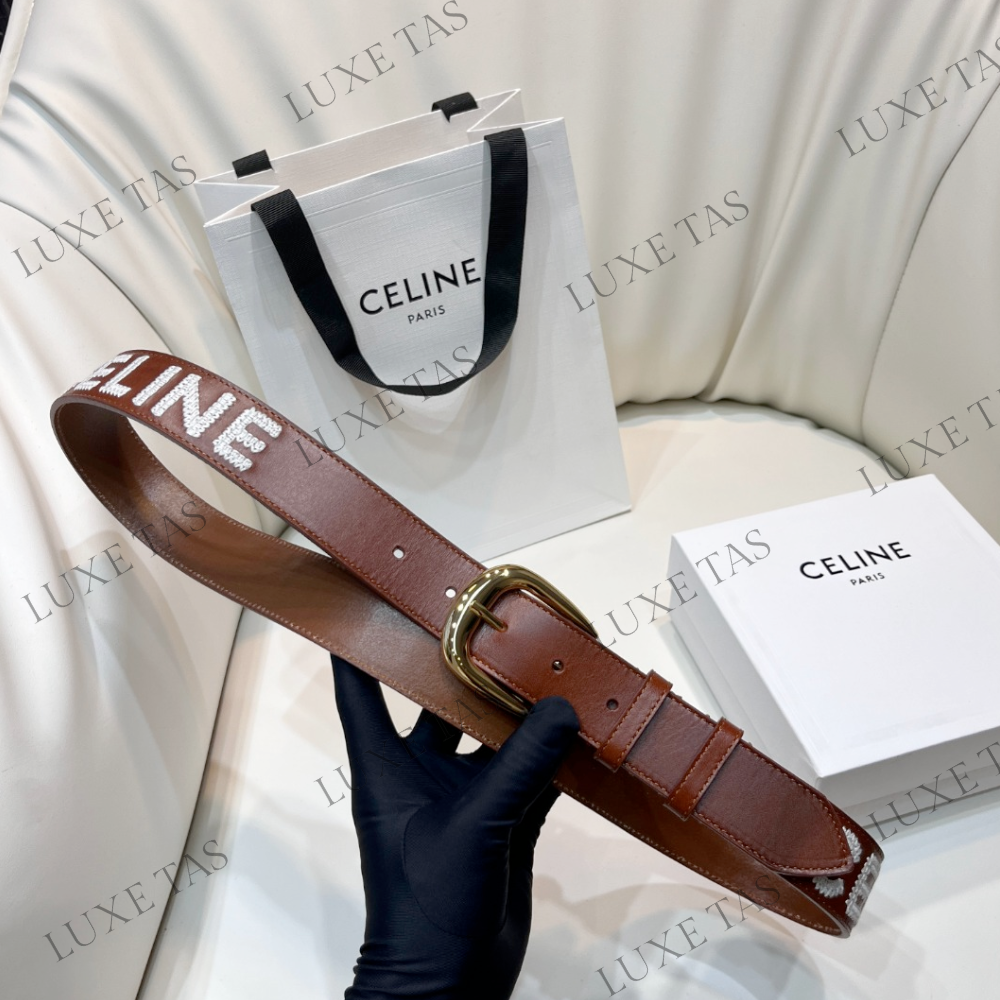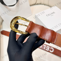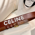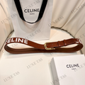 ntroducing the Calfskin Middle-Waist Belt, a versatile accessory that combines style and functionality. Crafted from high-quality calfskin, this belt exudes luxury and durability. The old gold metal hardware finishing adds a touch of elegance, while the rounded buckle provides a polished and sophisticated look. To enhance the design, the belt features Celine embroidery, showcasing the brand's iconic logo. Whether you're dressing up or down, this belt is the perfect addition to elevate your outfit. Embrace timeless fashion with the Calfskin Middle-Waist Belt, a must-have accessory for any fashion-forward individual.