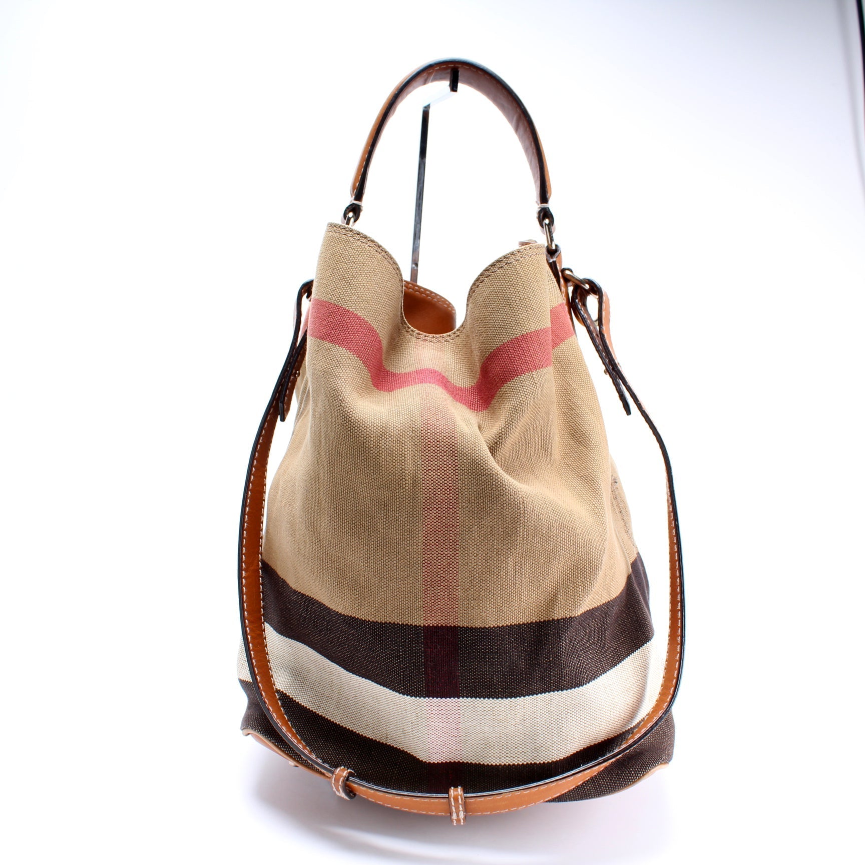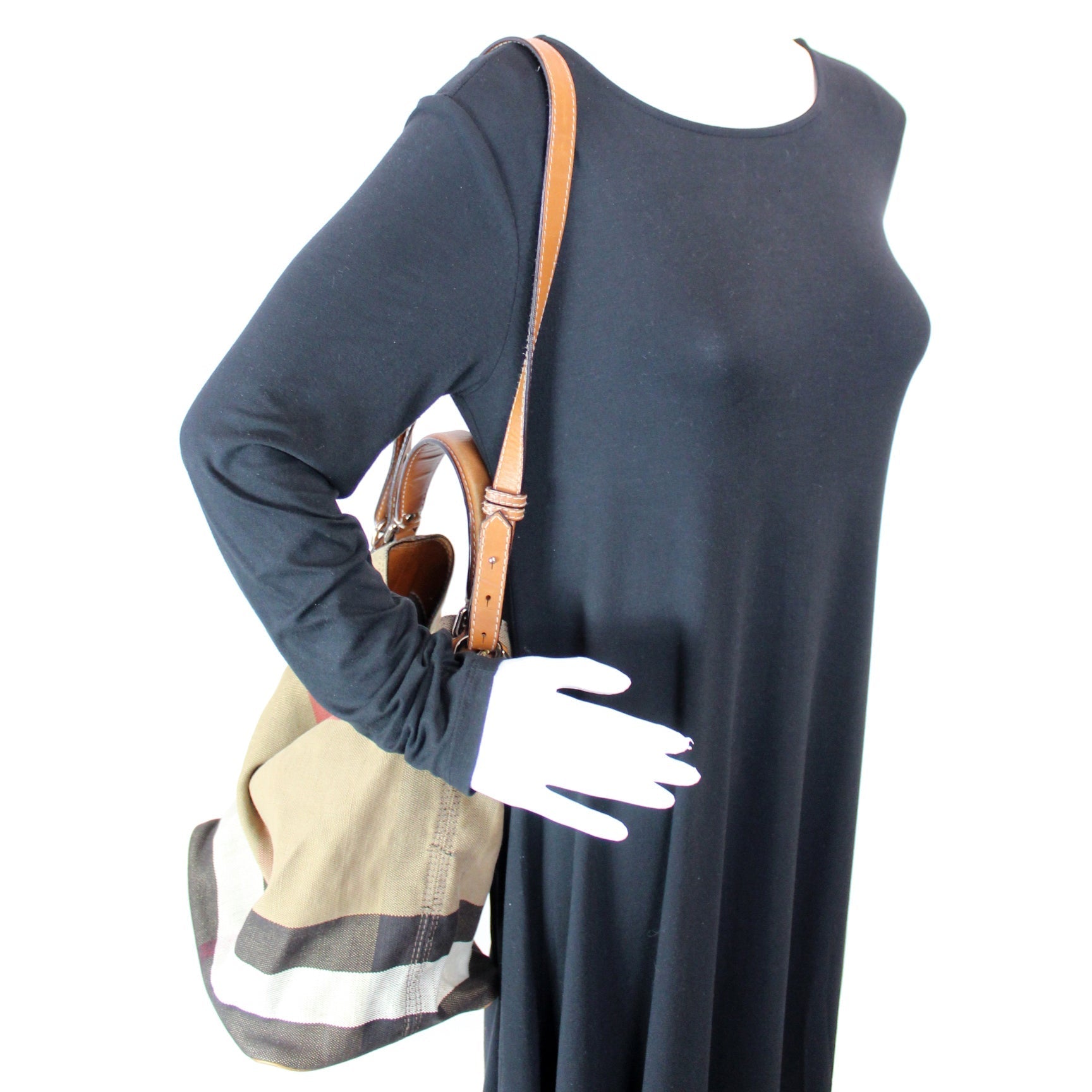 This Burberry Canvas Mega Check Ashby Hobo Bag Mediumis eye catching bag.