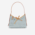 The iconic Monogram Denim pattern from 2005 makes a stylish comeback in this modern CarryAll MM bag. Crafted from organic cotton, it features a distinctive washed effect achieved through Louis Vuitton's exclusive bleaching technique. Designed for urban life, this sleek silhouette is accented with contrasting leather trims and includes a removable name tag. An interior zipped pocket keeps your essentials secure.