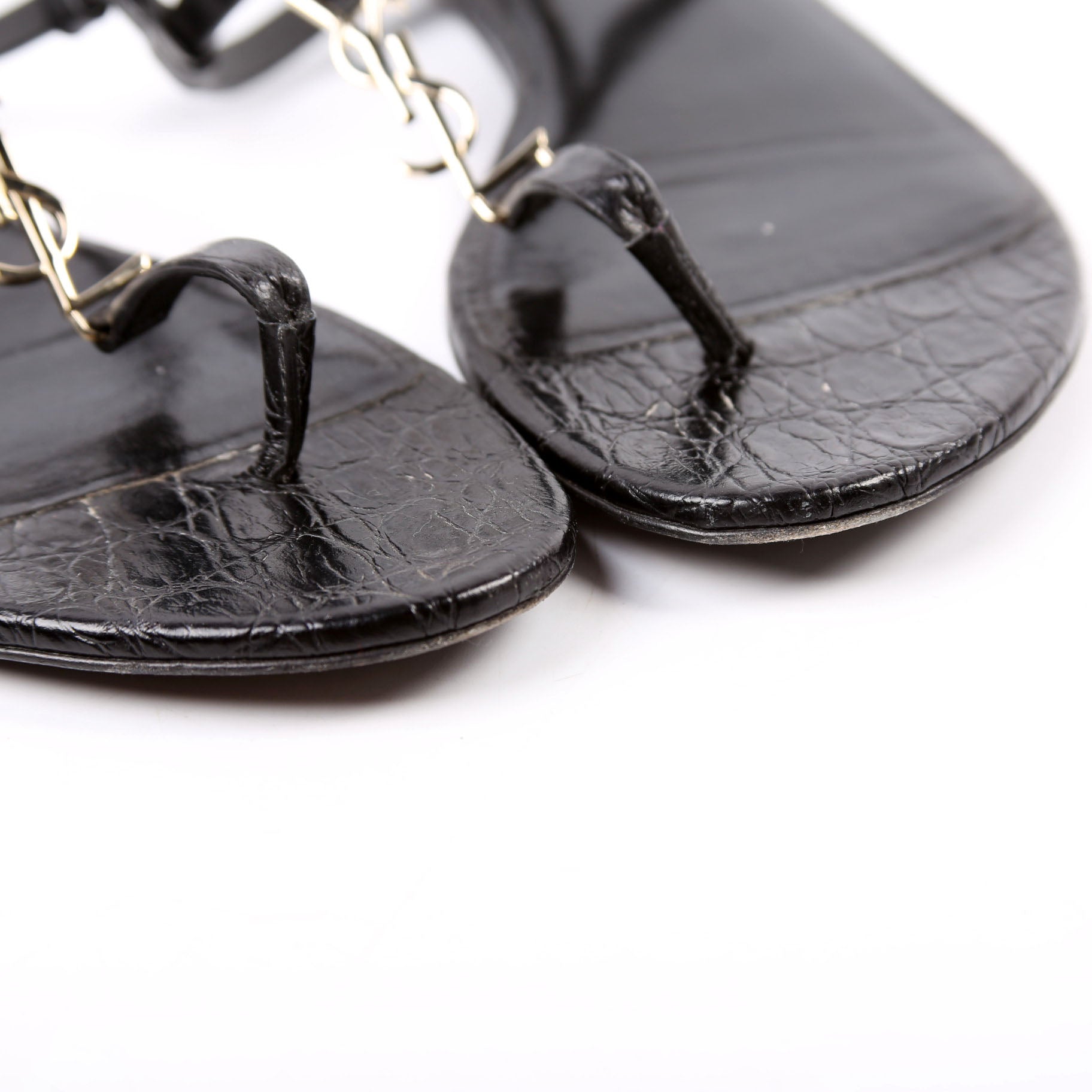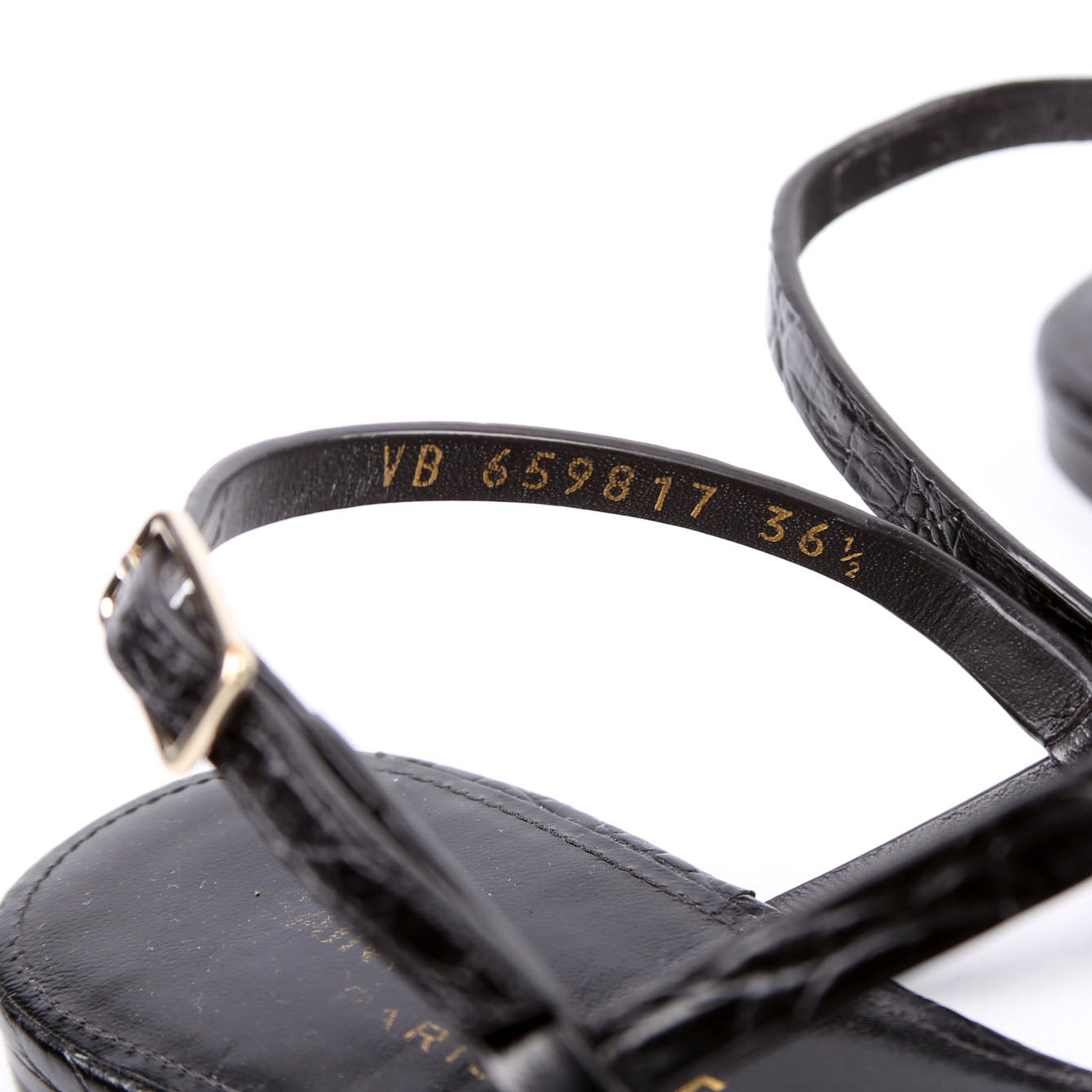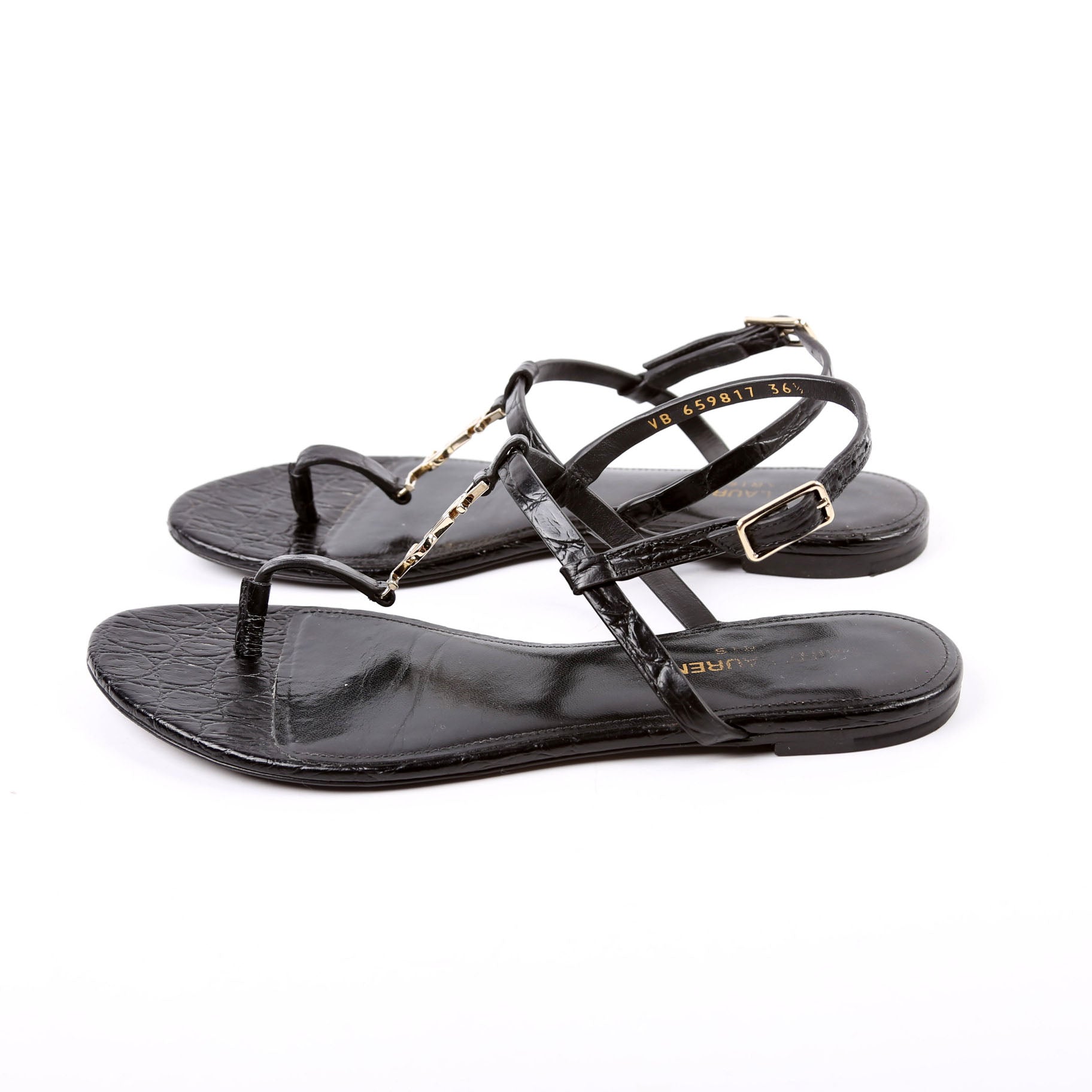 Cassandra T-Strap Sandals Crocodile Embossed Size 36.5 Black
