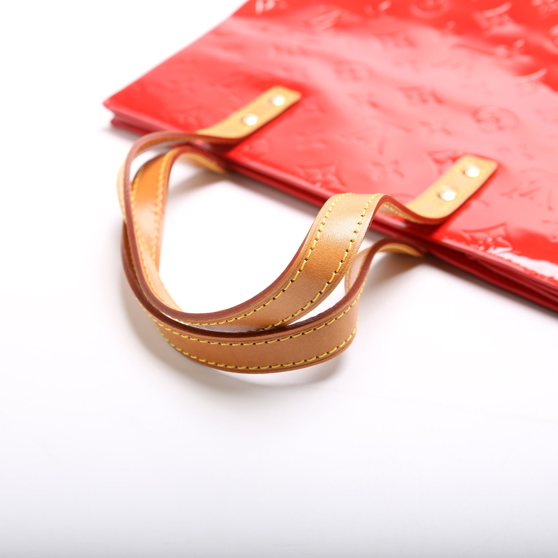 Handle: The leather handles have even patina.