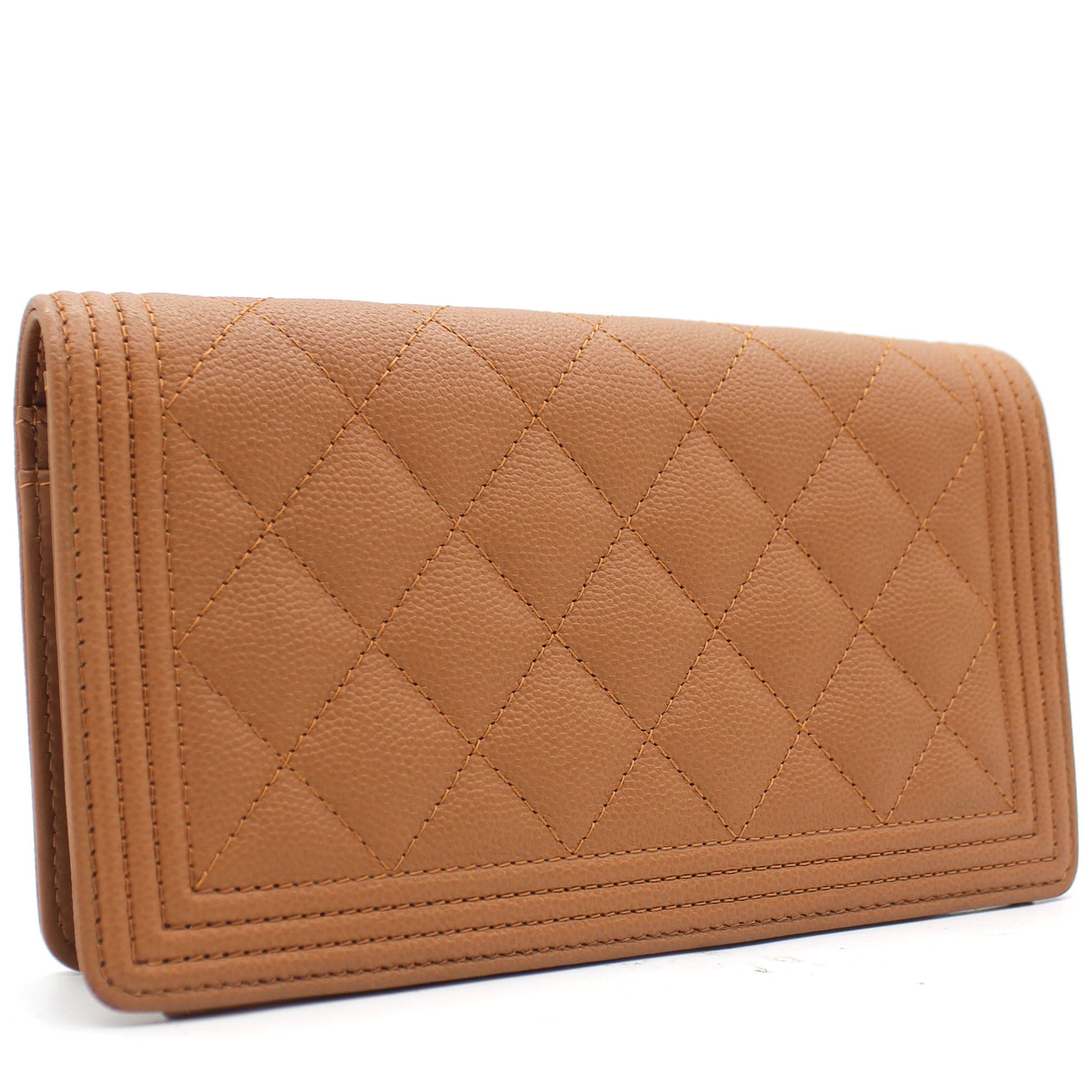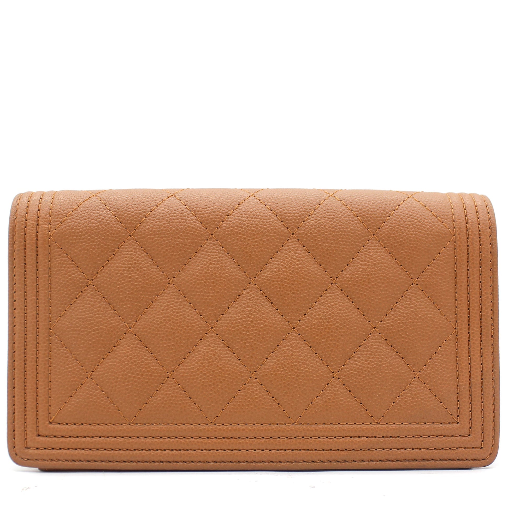 Chanel Caviar Leather Quilted Boy Yen Wallet Dark Beige