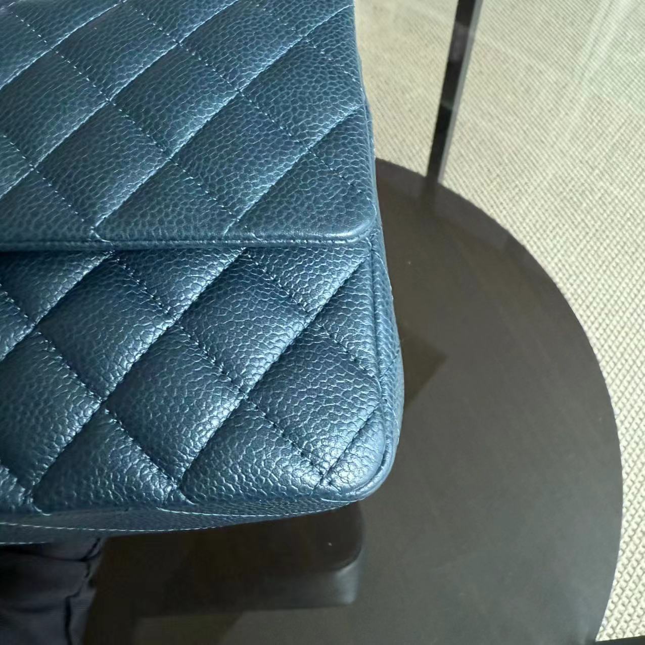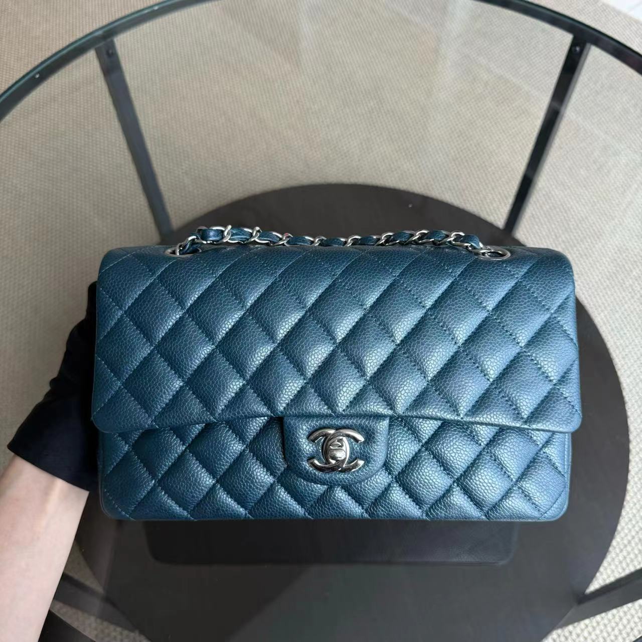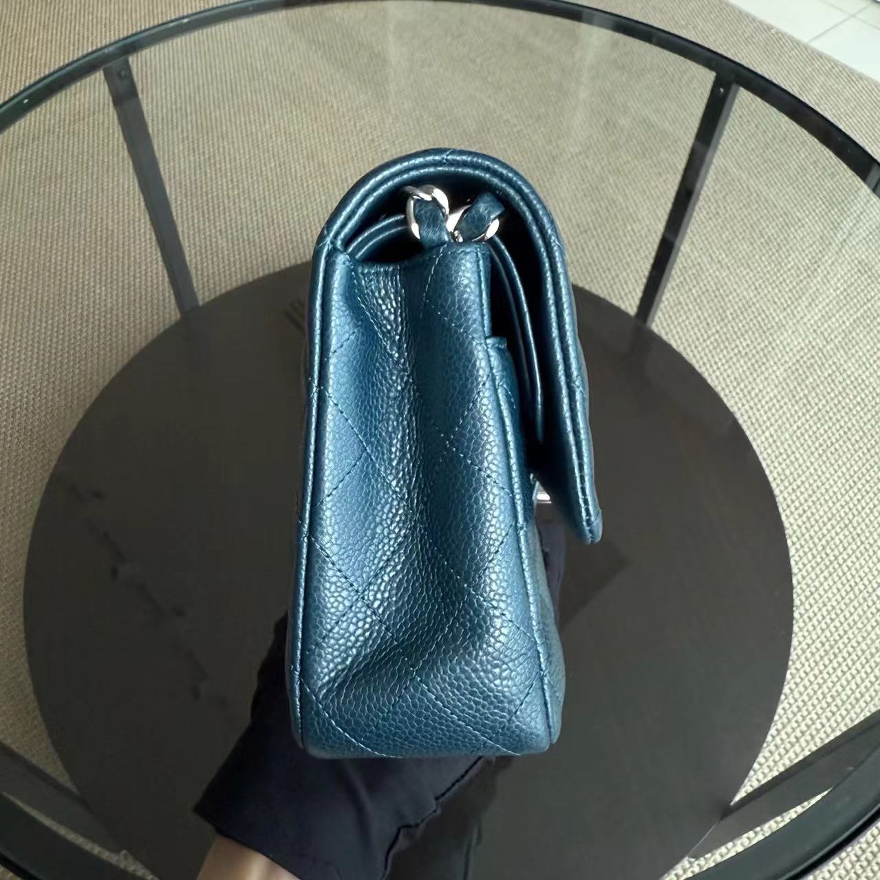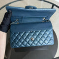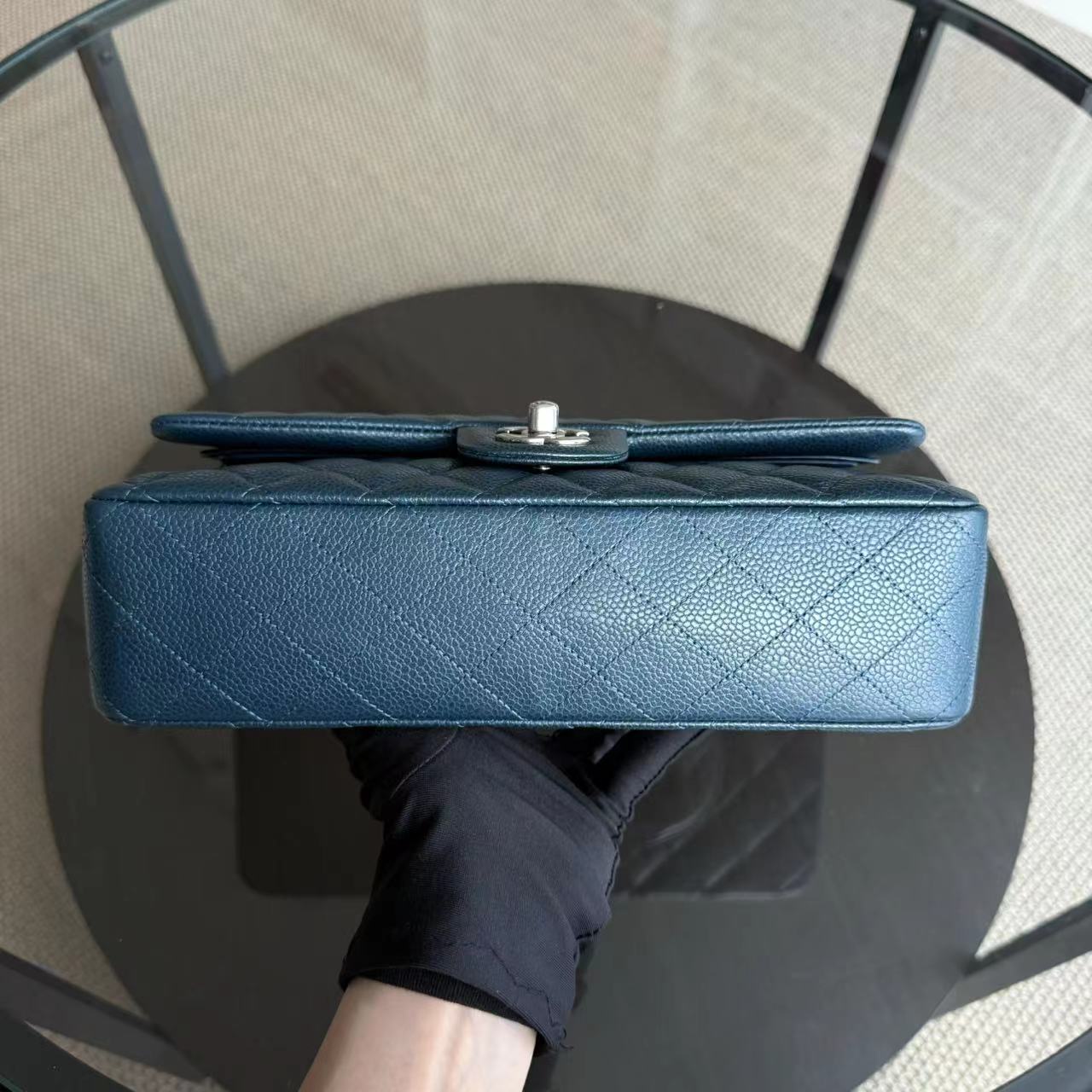 Caviar Medium Classic Flap Quilted Dark Blue Green Silver Hardware Series 20