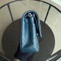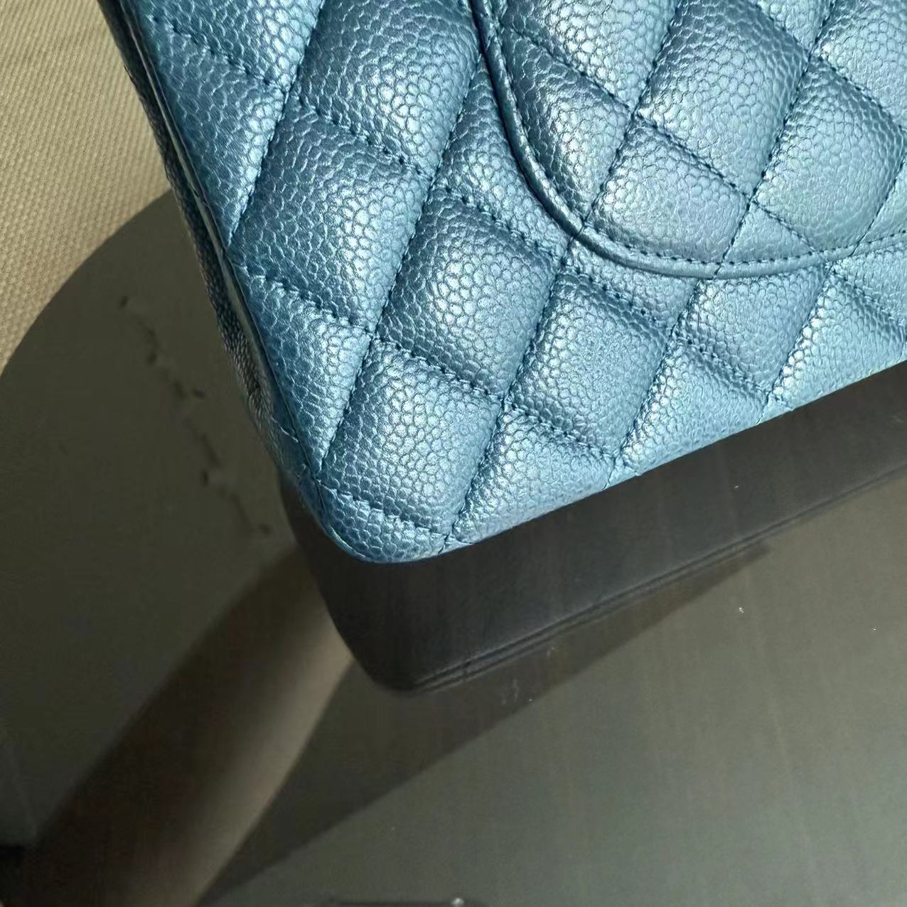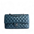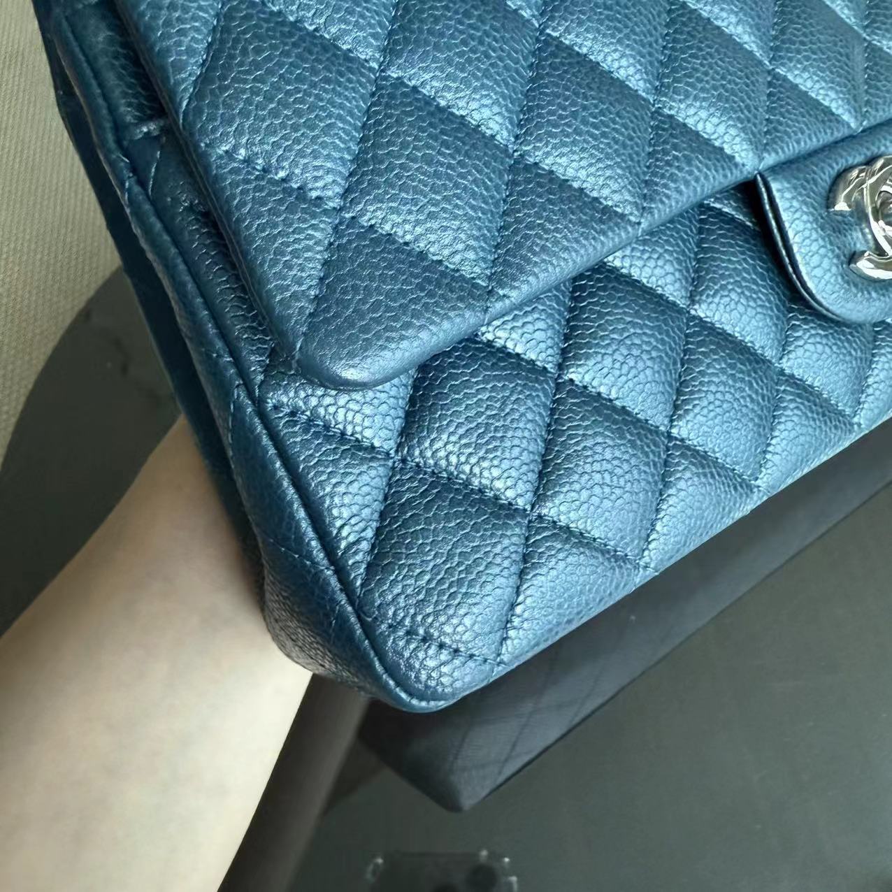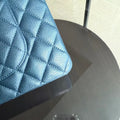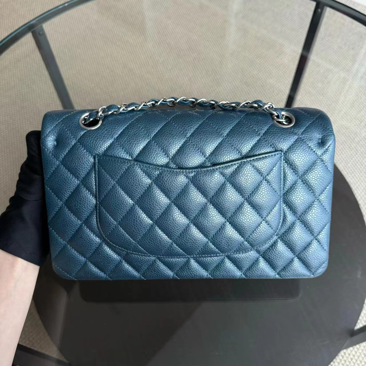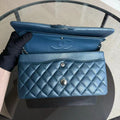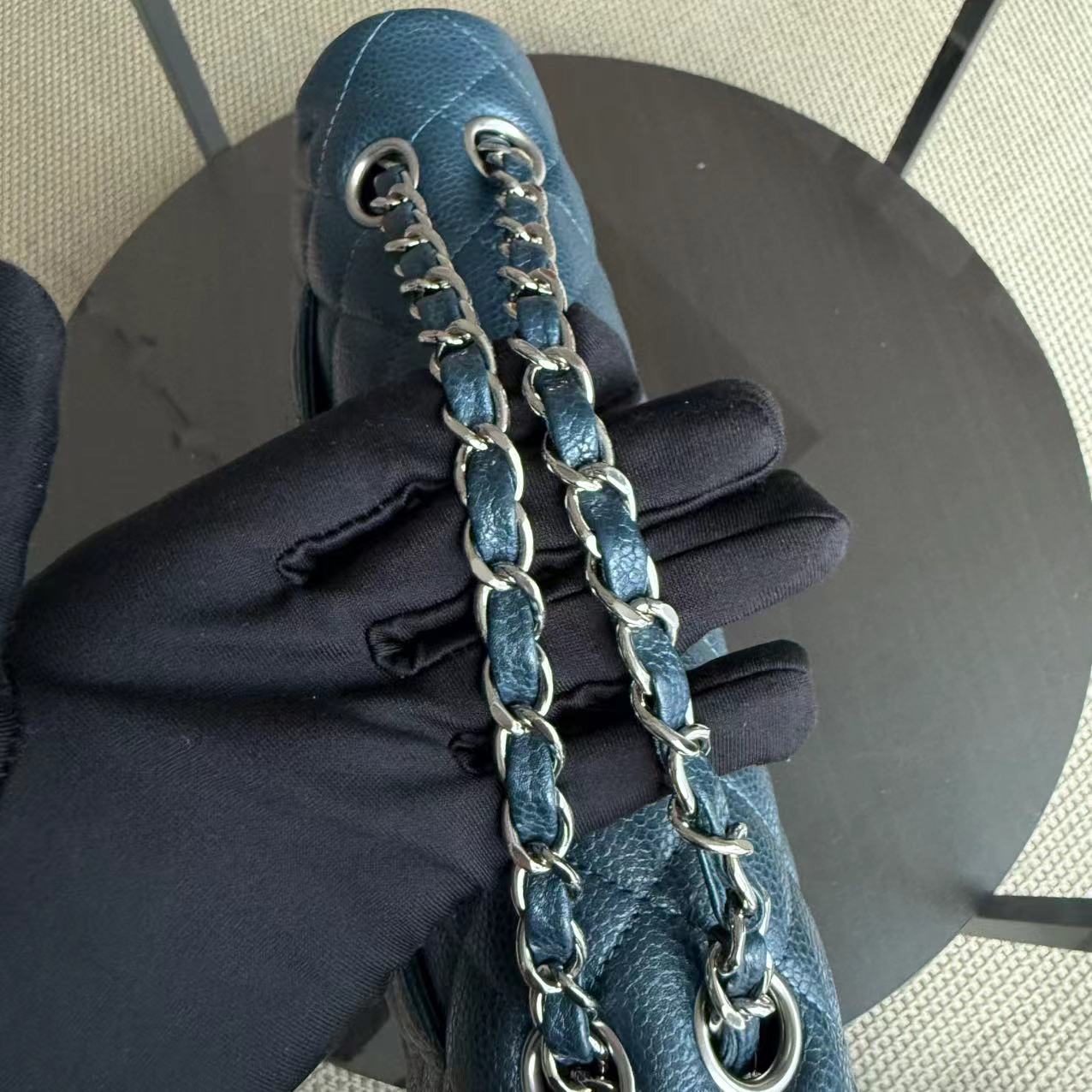Caviar Medium Classic Flap Quilted Dark Blue Green Silver Hardware Series 20
