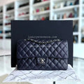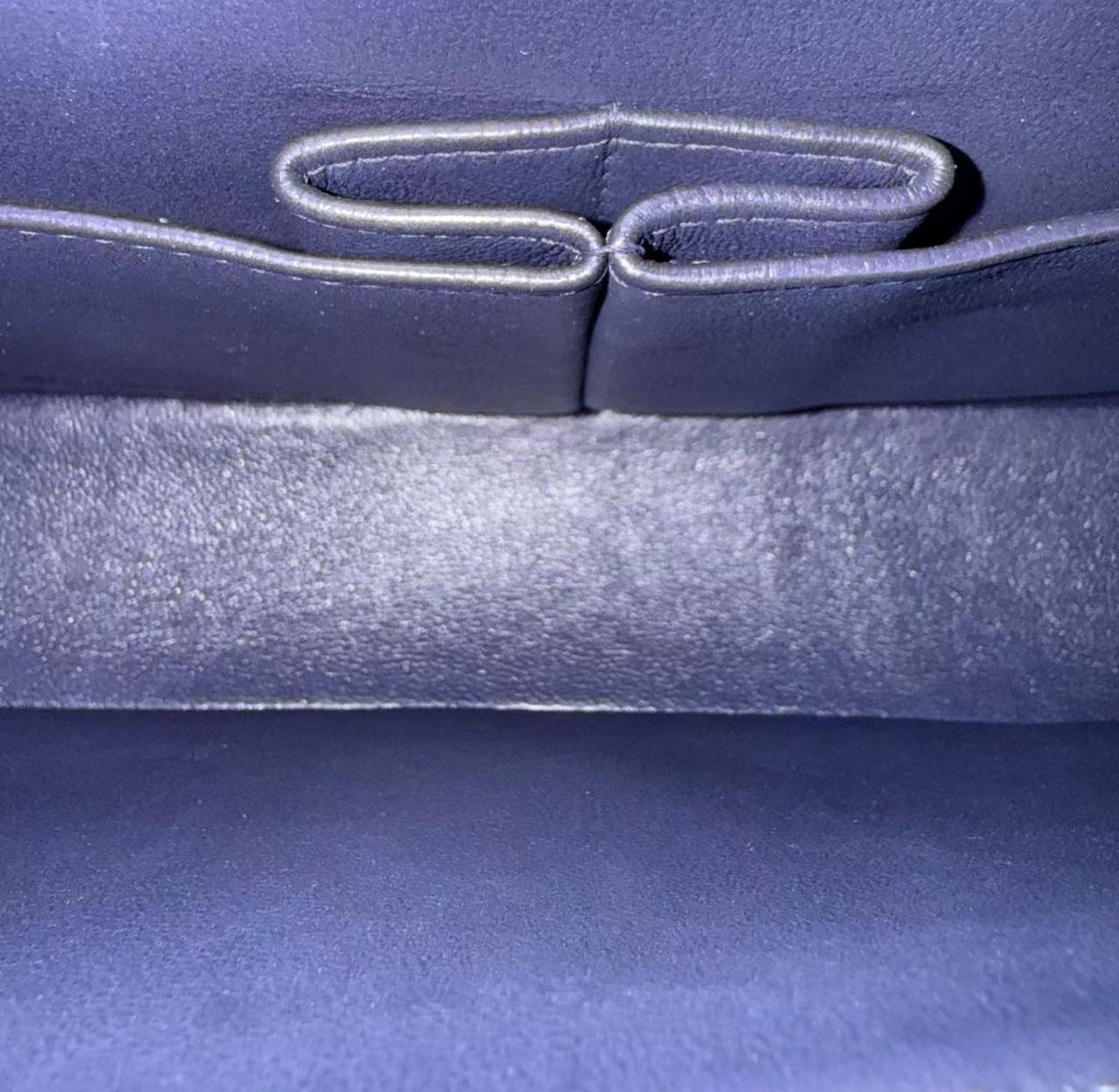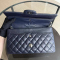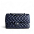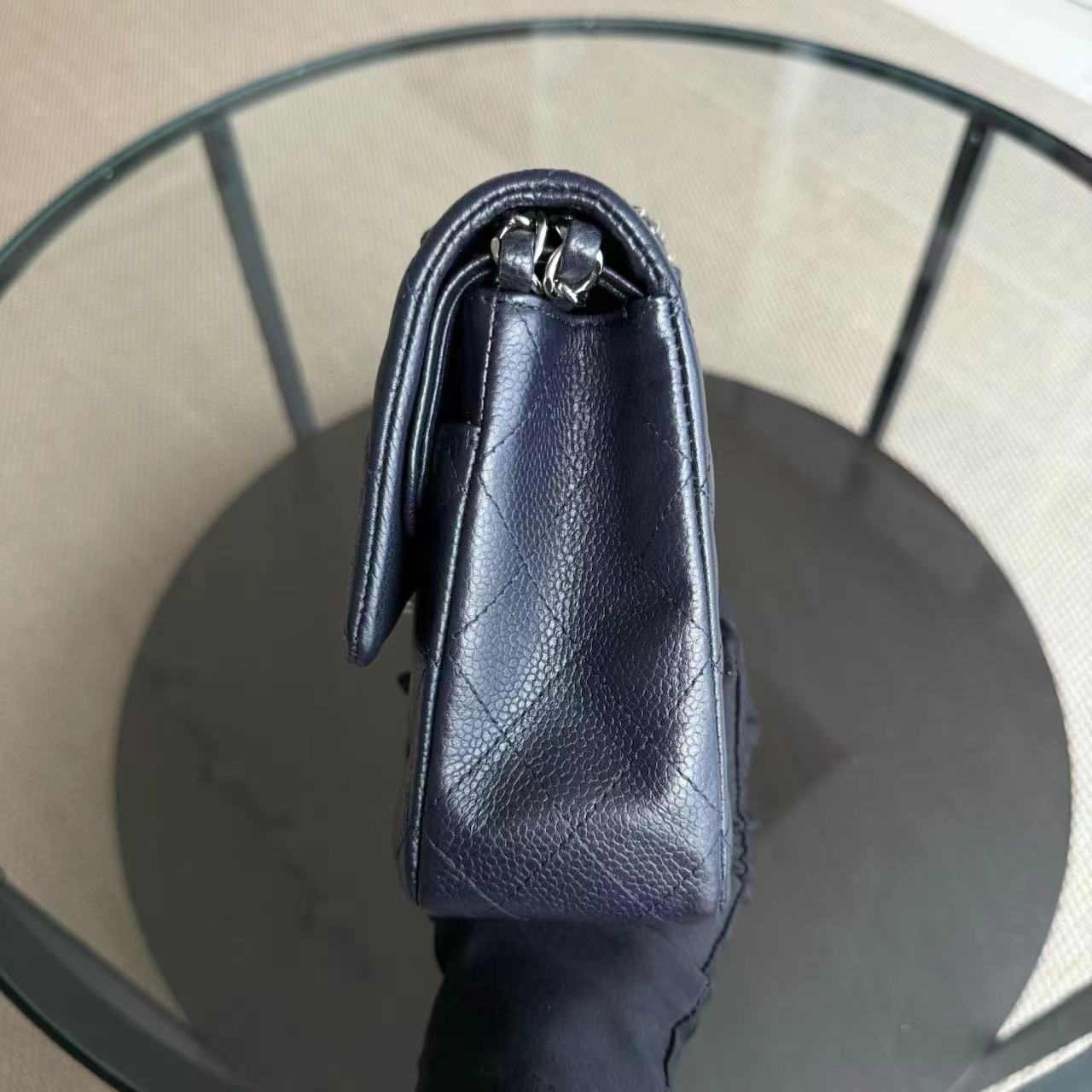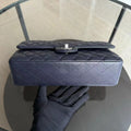 Caviar Medium Classic Flap Quilted Dark Blue Silver Hardware Series 18