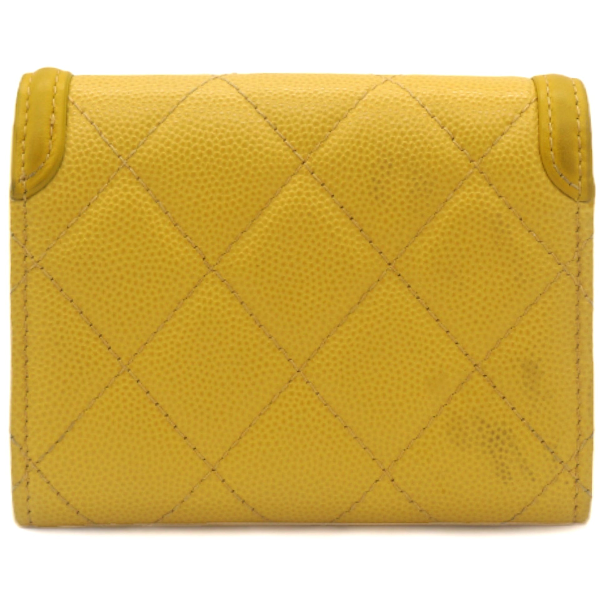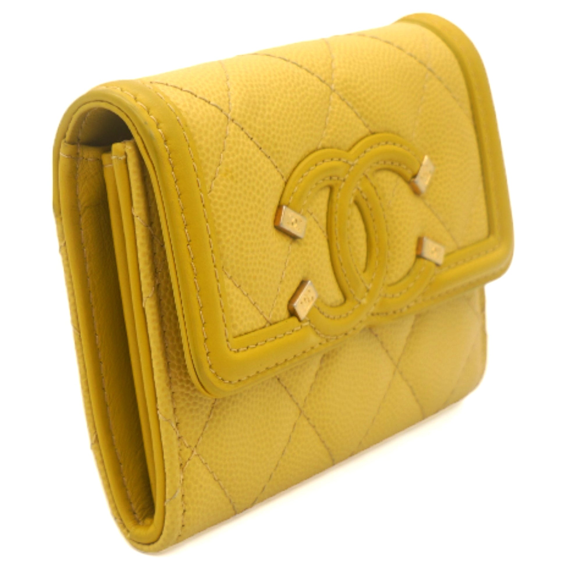 Chanel Caviar Quilted Filigree Flap Card Holder Yellow