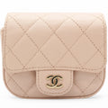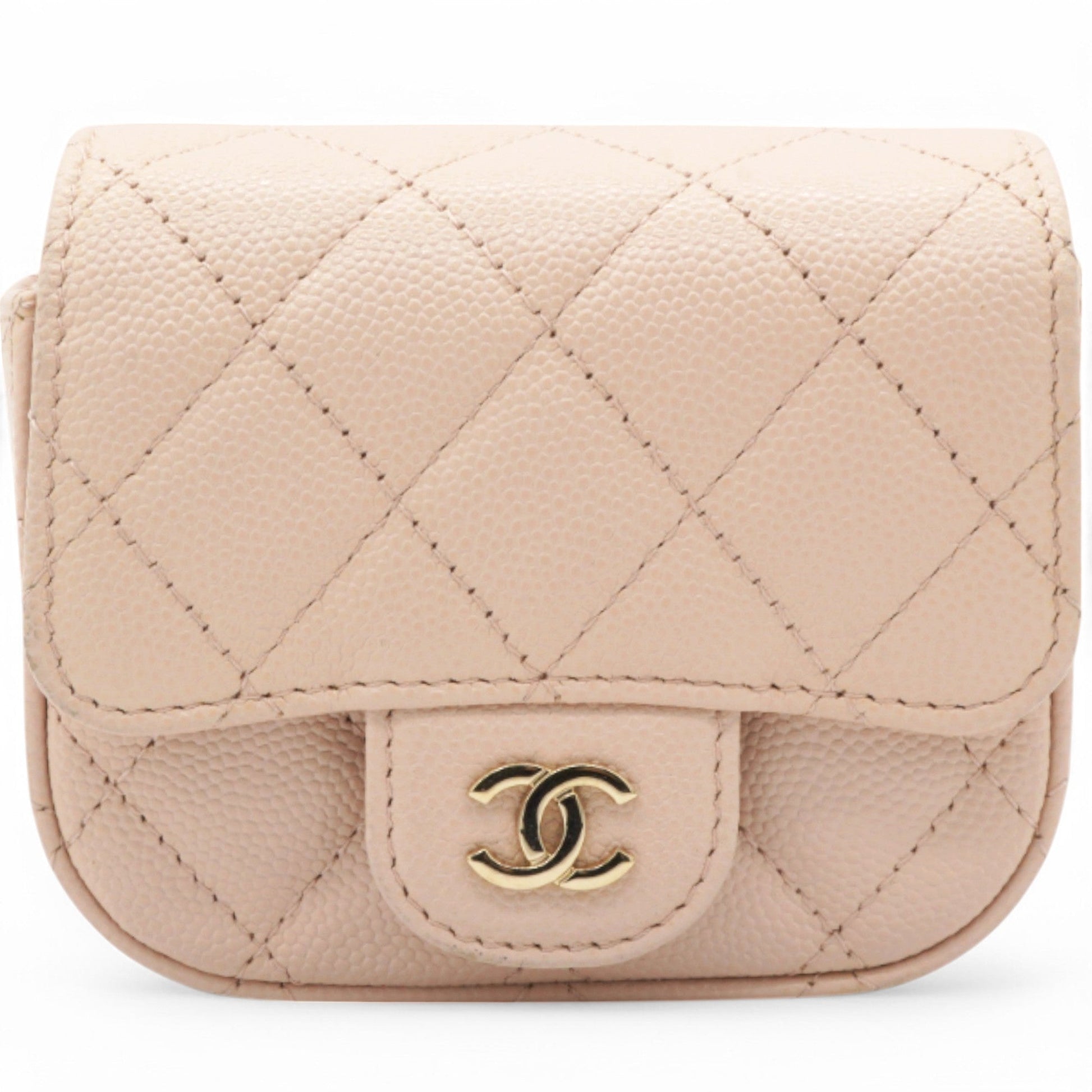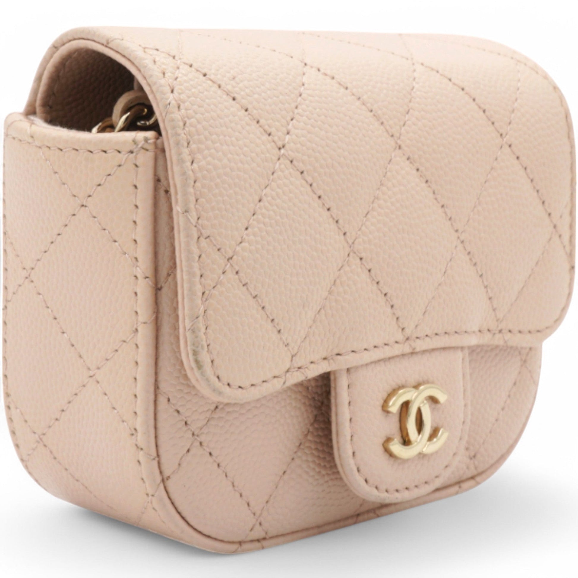 Chanel Caviar Quilted Micro Clutch With Chain Light Beige