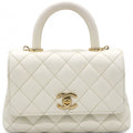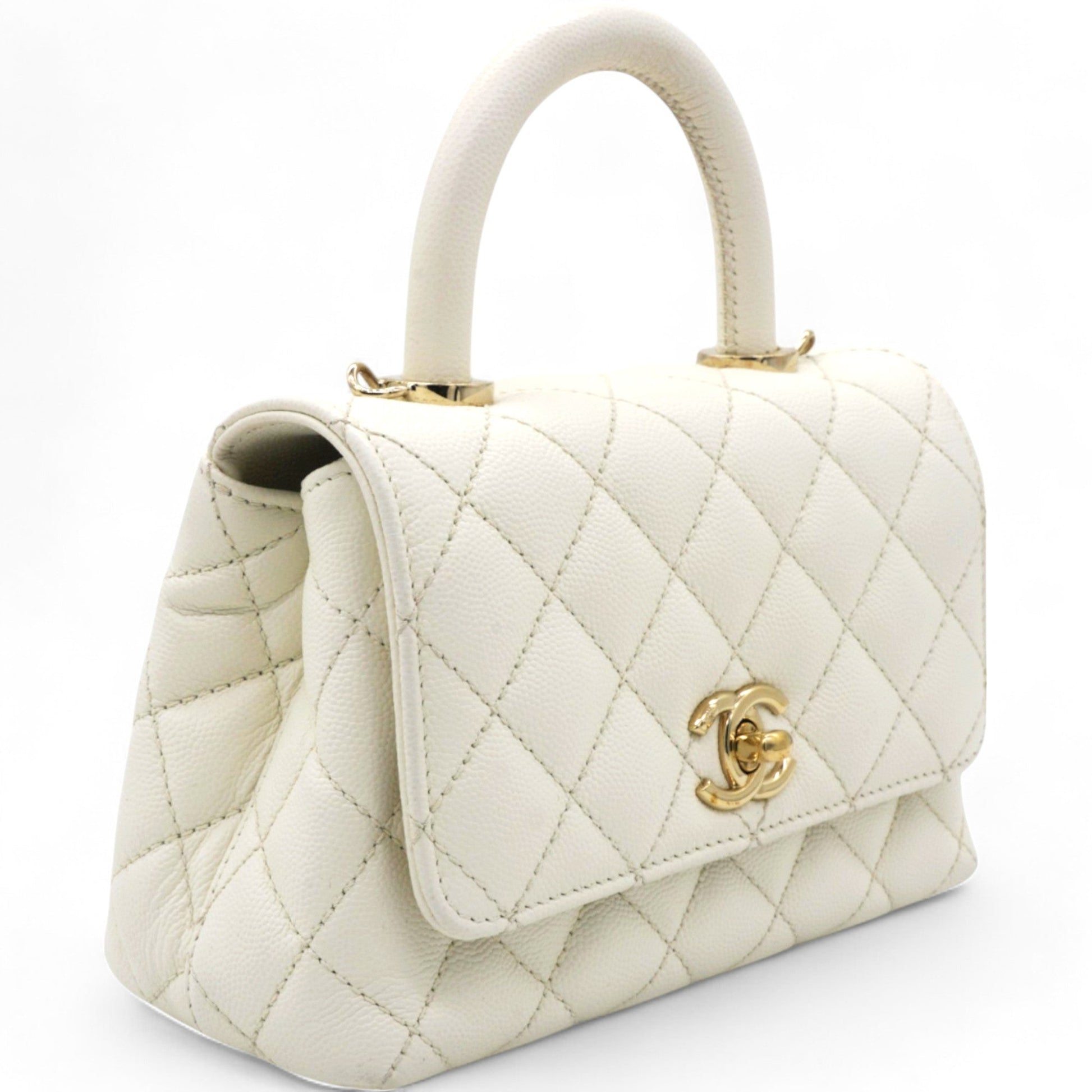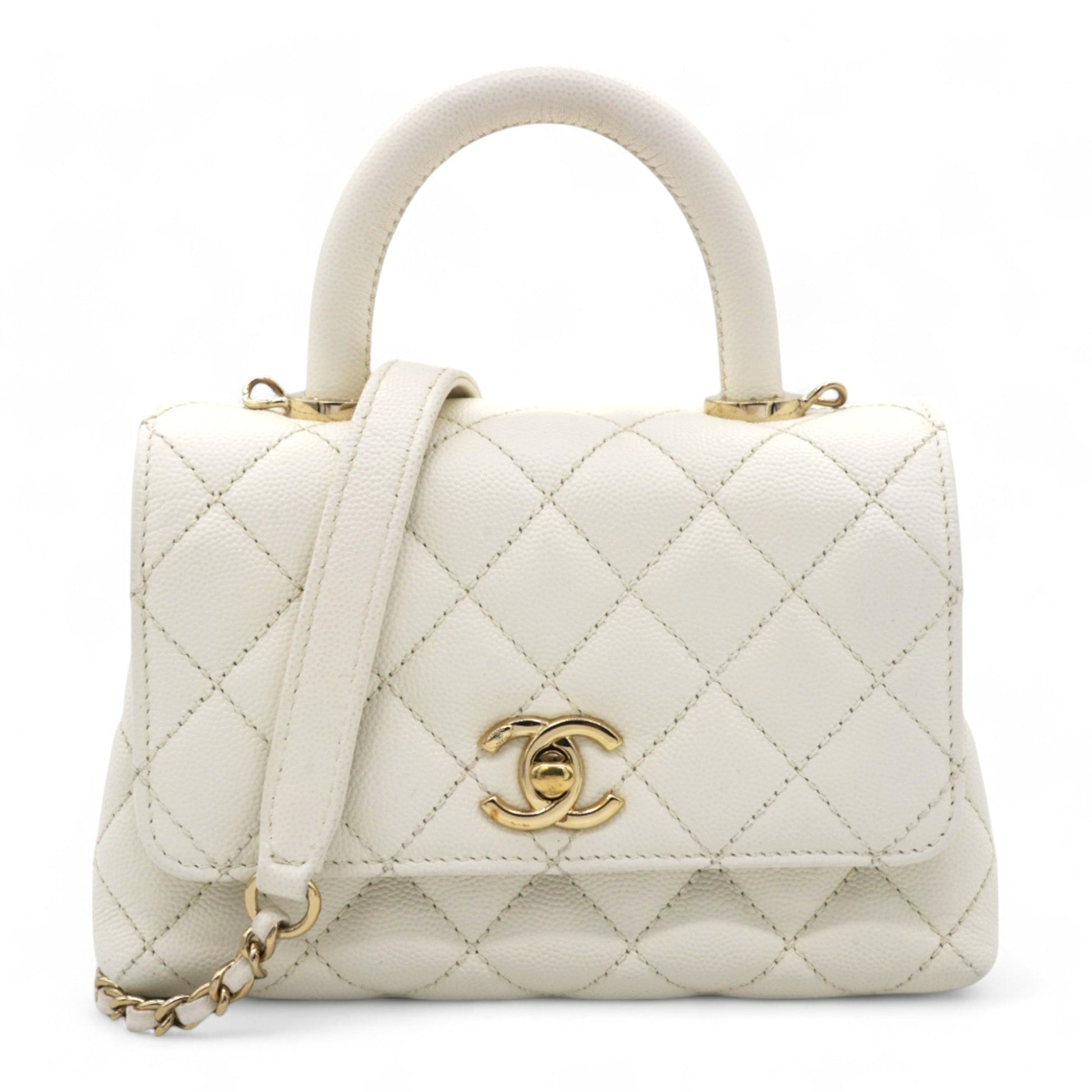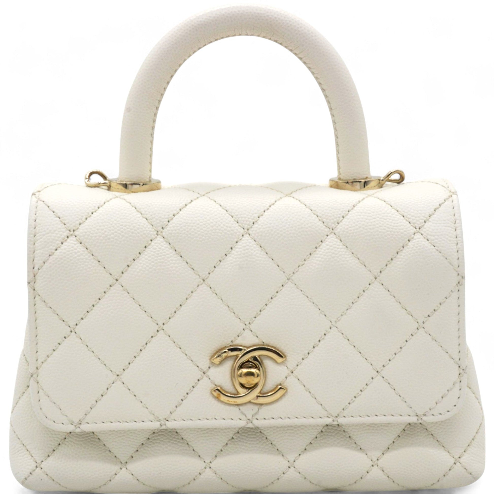 Chanel Caviar Quilted Mini Coco Handle Flap White