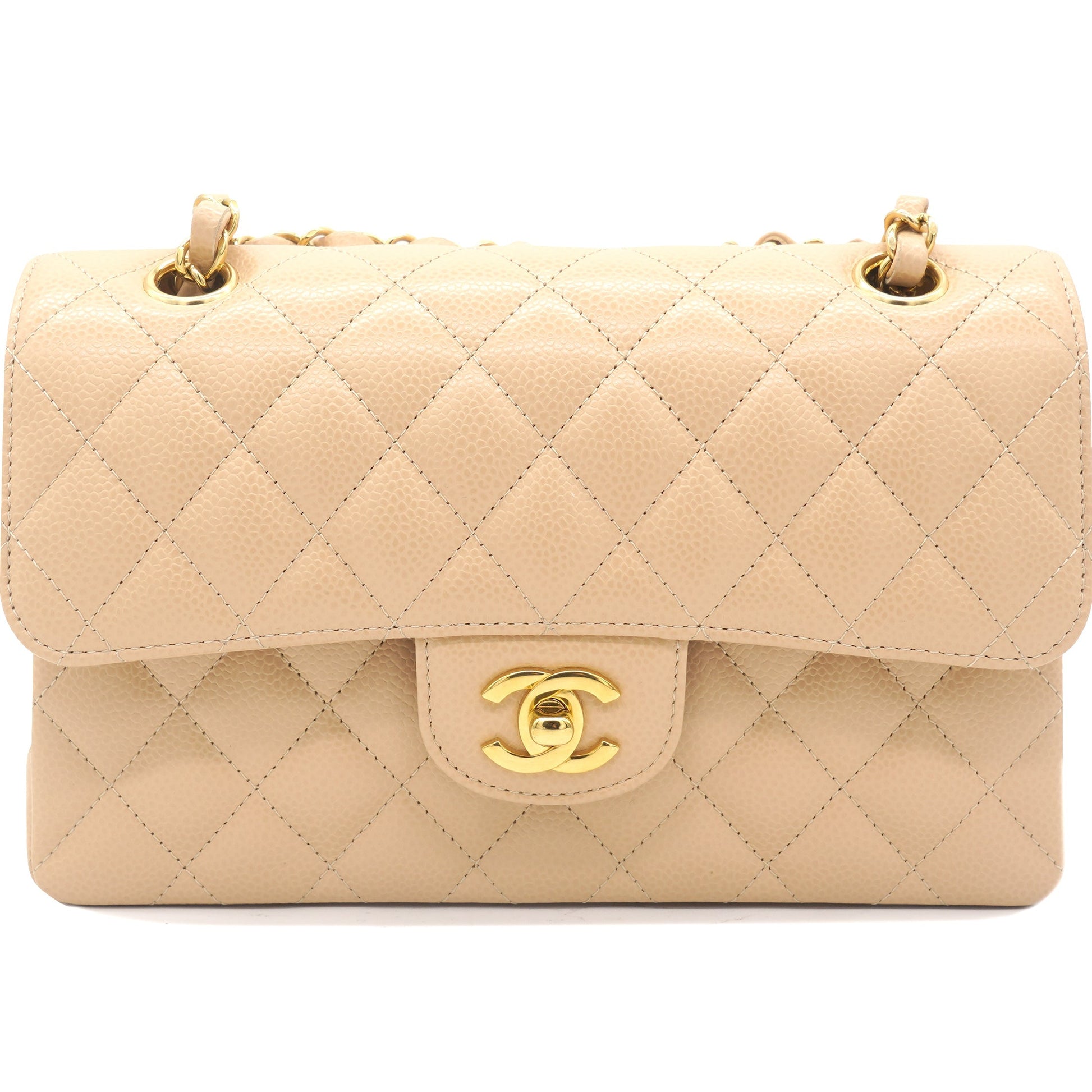 Chanel Caviar Quilted Small Classic Double Flap Beige
