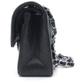 | Made in Italy, this small double flap chain shoulder bag was fashioned from black colour caviar leather, finished with a diamond quilt. It features a leather shoulder strap, adorned with a silver-tone chain, and a main foldover top that is closed by a CC turnlock. As it opens, it leads to a second, smaller flap, fastened by a snap button. It presents us to a luxurious burgundy interior, embellished with a stitched logo and a classic logo stamp. The compartment has two slip pockets and an internal logo stamp. Functional, the accessory displays a front slip pocket, hidden under the double flaps, and another one open on the back. | Material: Leather Lining: Leather Hardware: Silver color fininsh metal Accessories:Dust Bag; Receipt; Box Serial Number: J3452EP6 Production Year: 2022 | ![]() |
