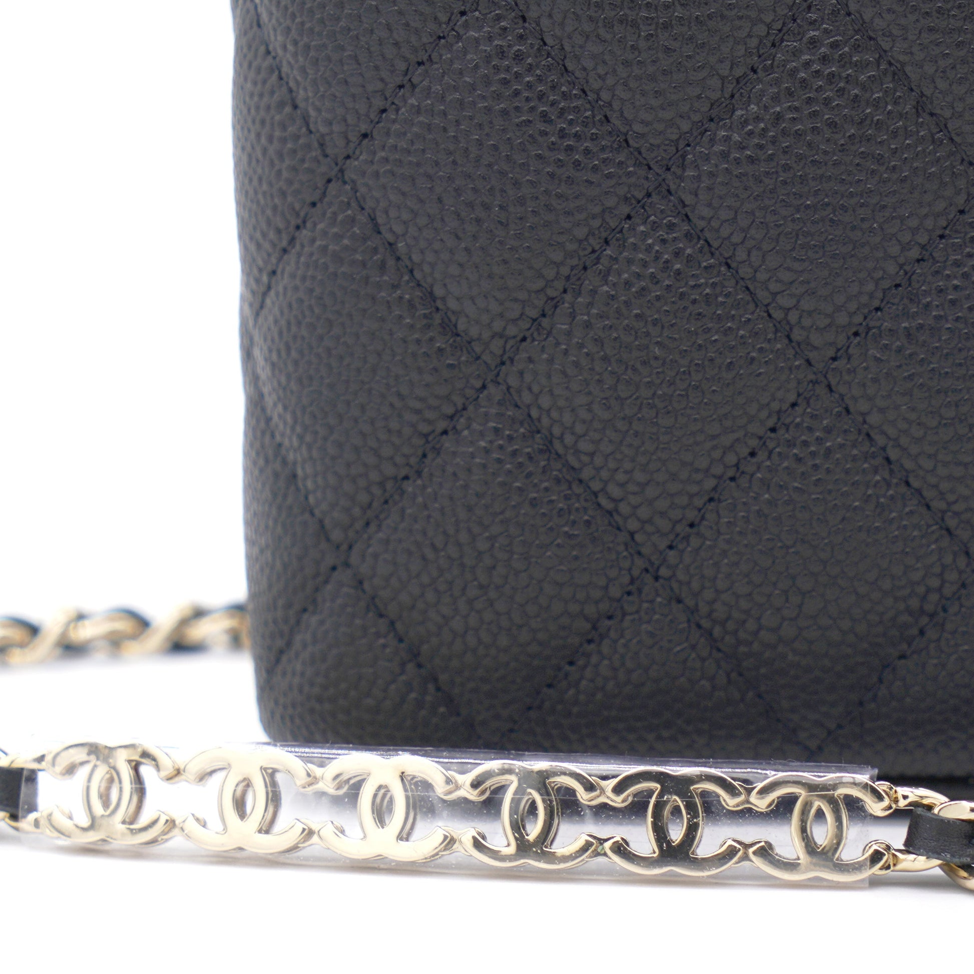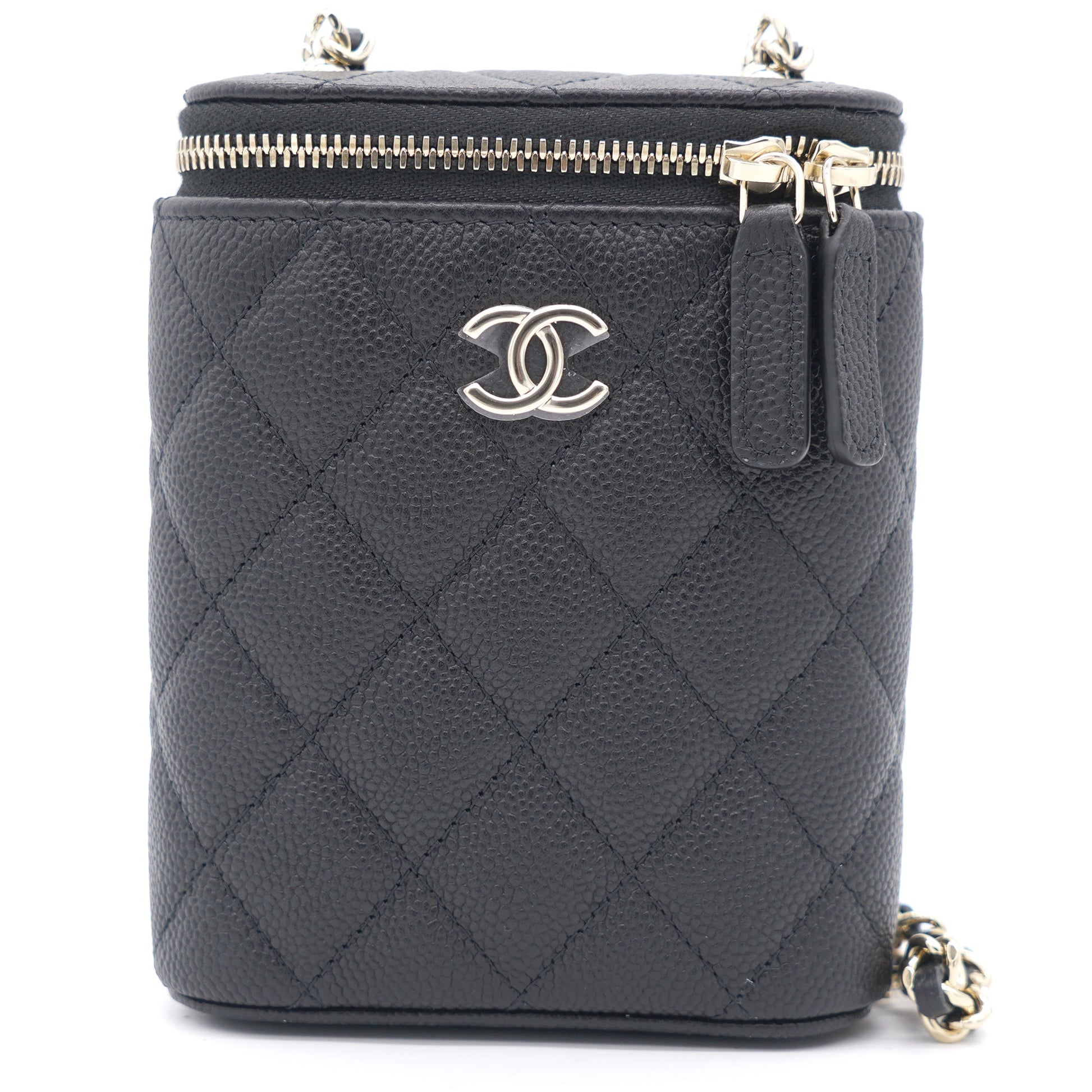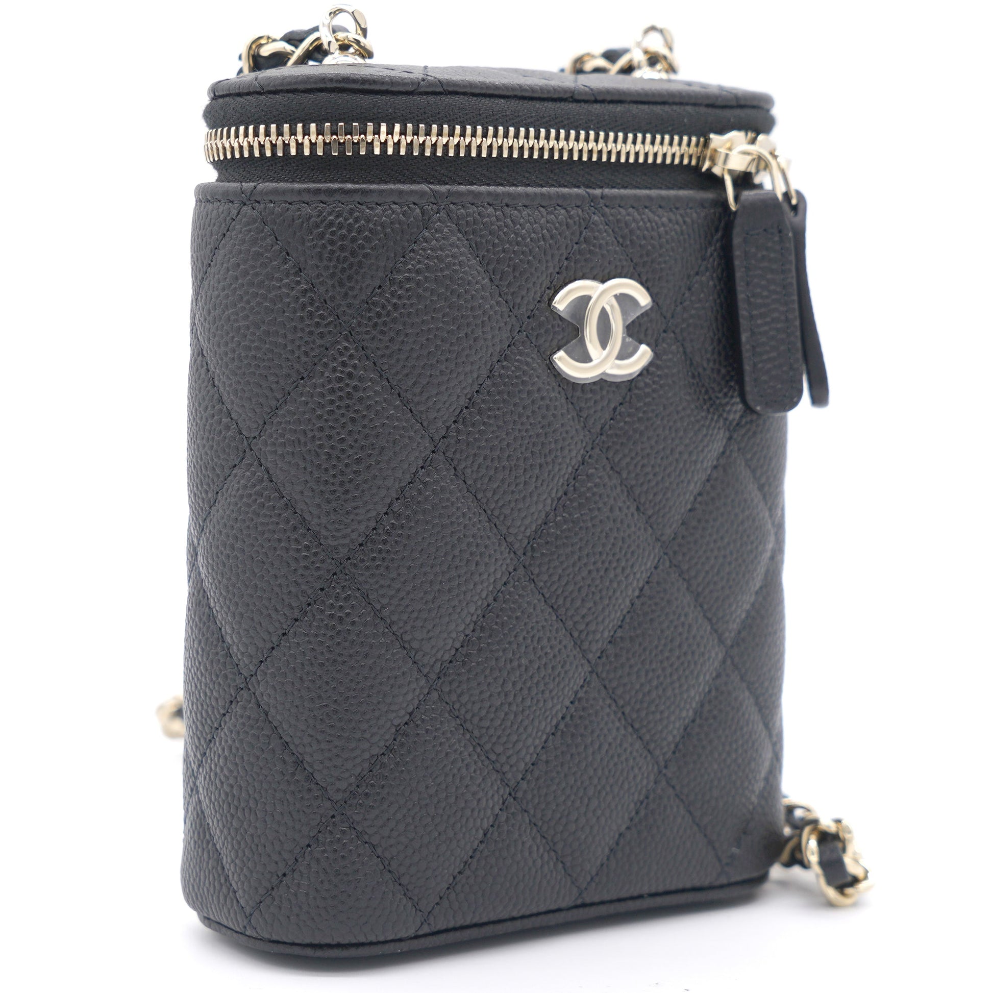 Chanel Caviar Quilted Small Vertical Coco Beauty Vanity Case With Chain Black