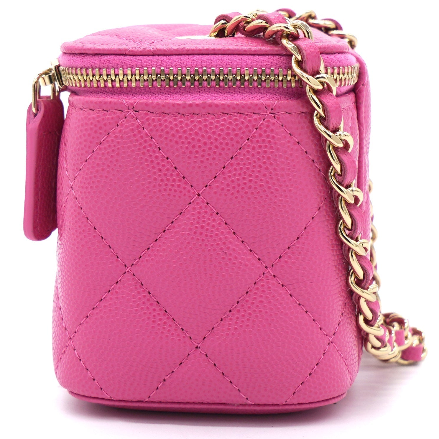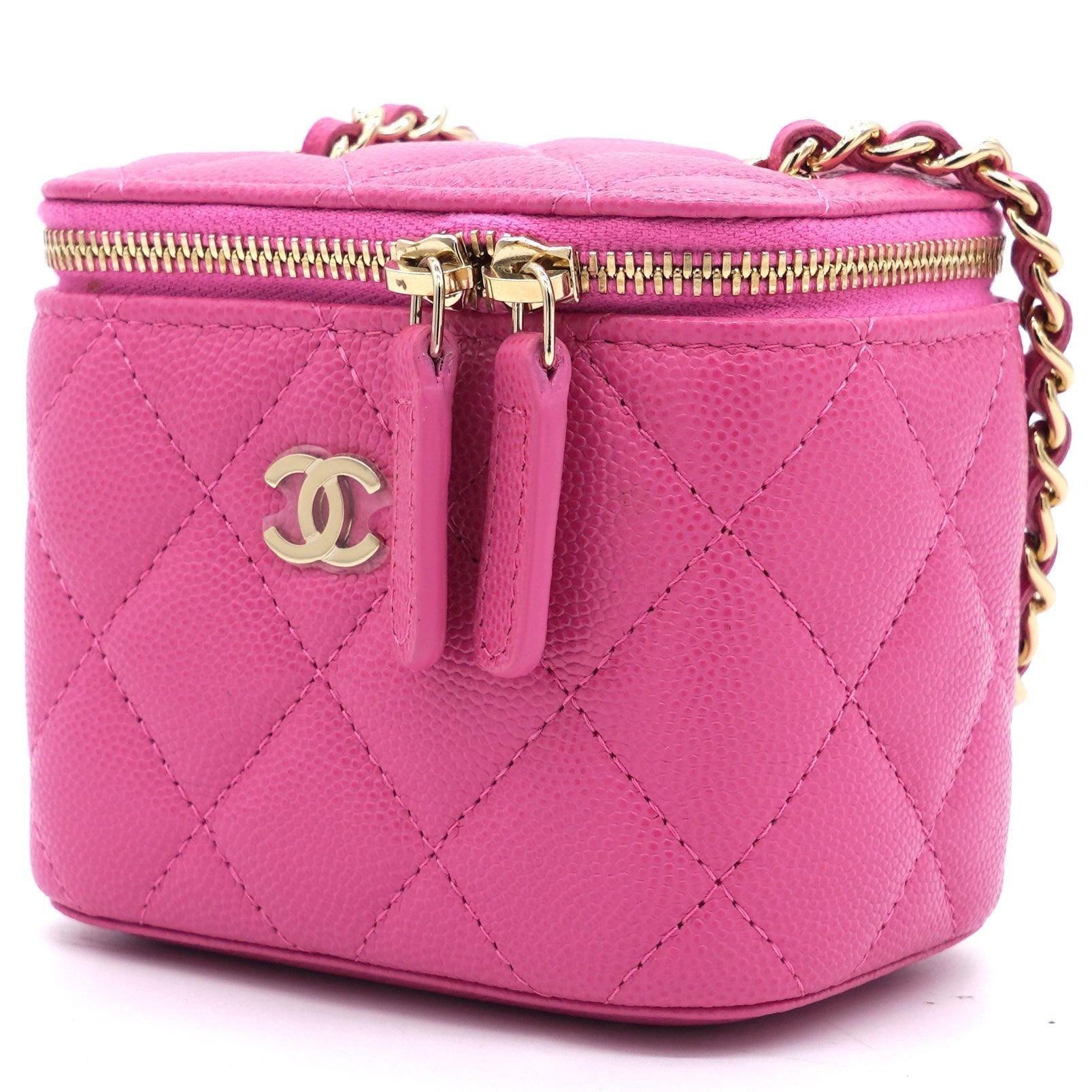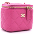 Chanel Caviar Quilted Small Vertical Coco Beauty Vanity Case With Chain Pink