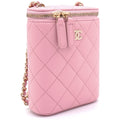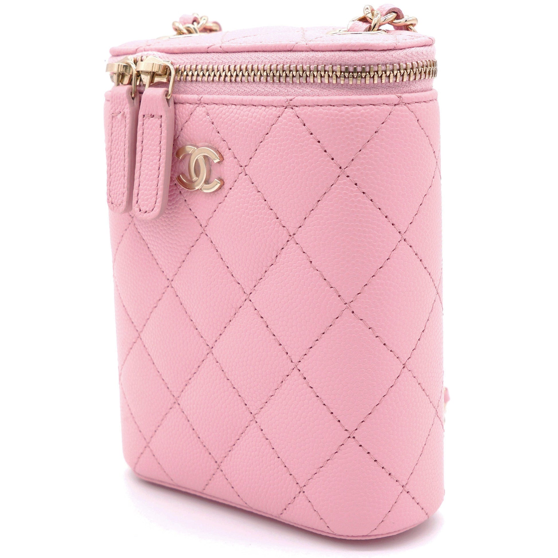 Chanel Caviar Quilted Small Vertical Coco Beauty Vanity Case With Chain Pink Sakura