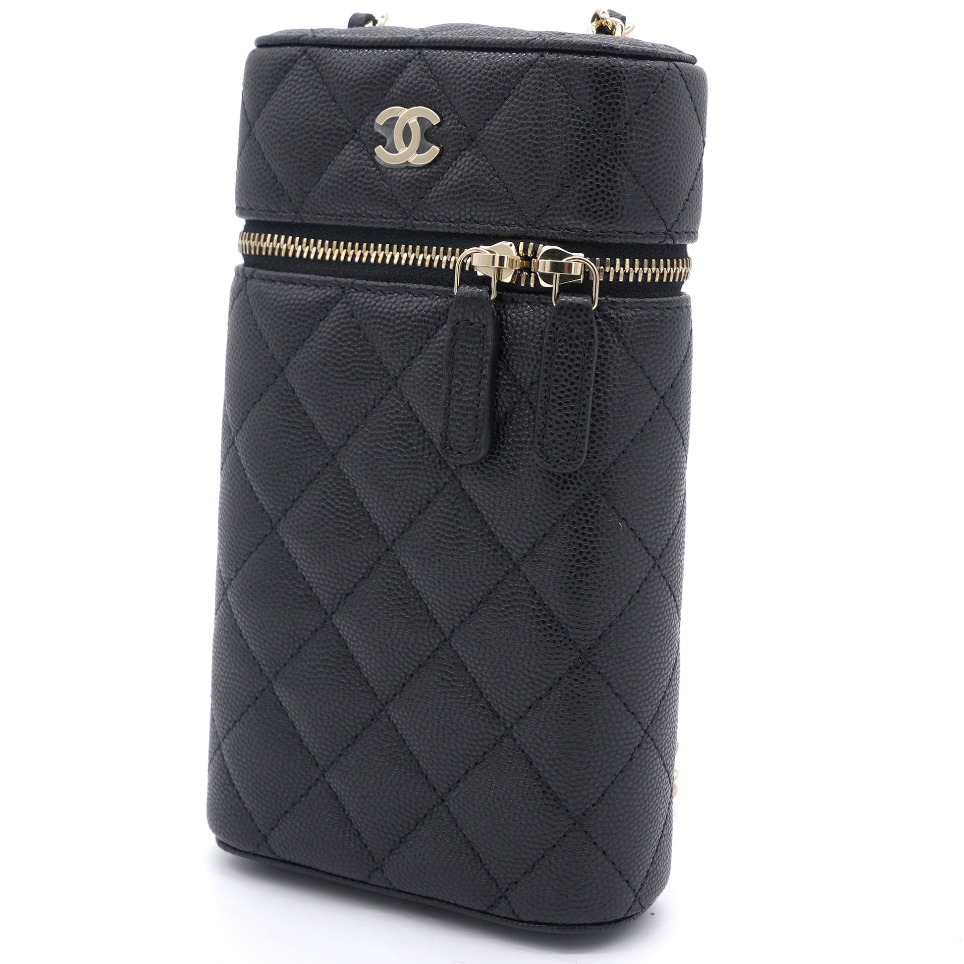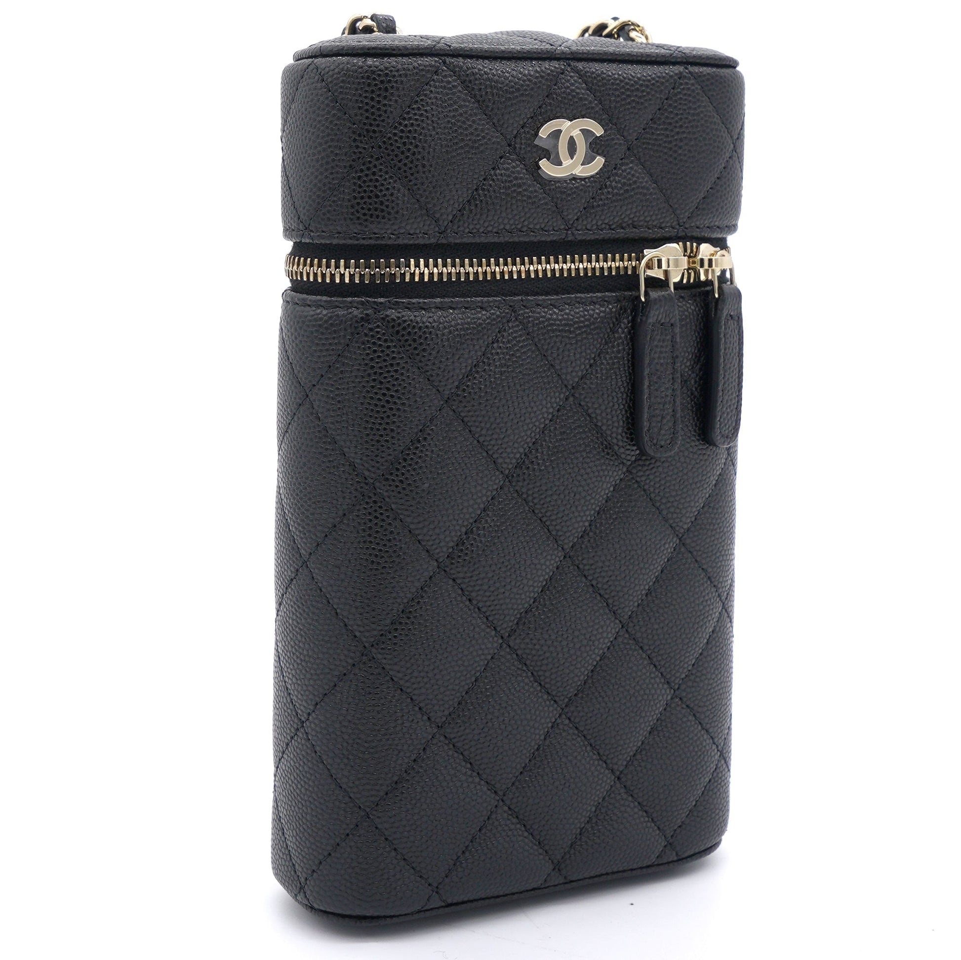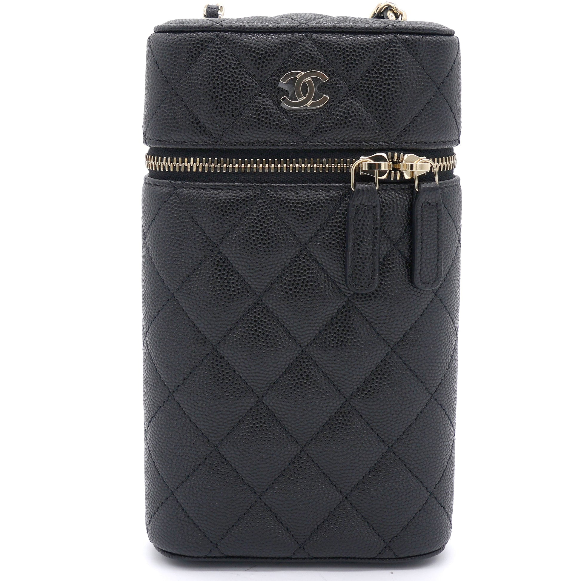 Chanel Caviar Quilted Small Vertical Vanity Case With Chain Black