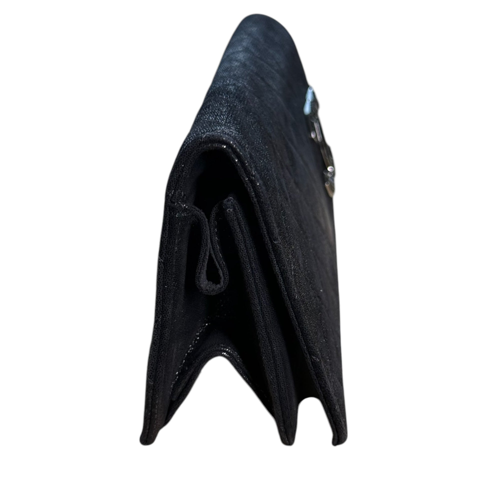 CC Black Quilted Iridescent Calfskin Strass Long Clutch