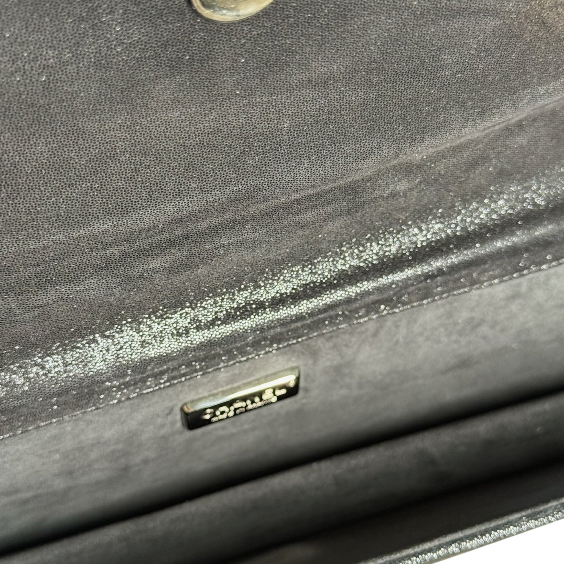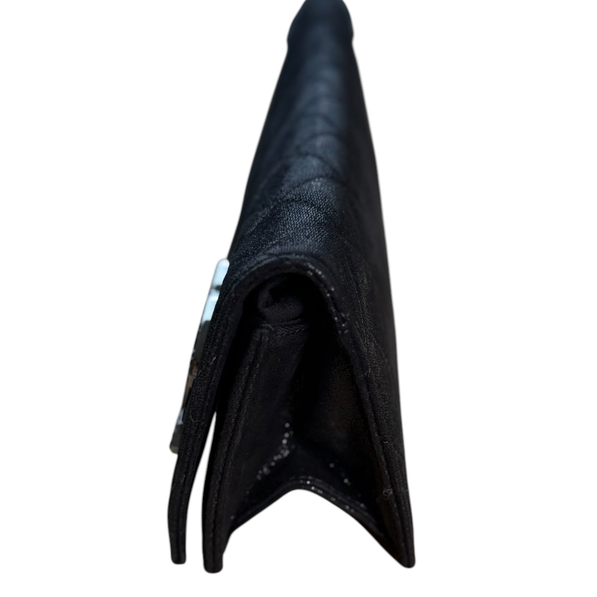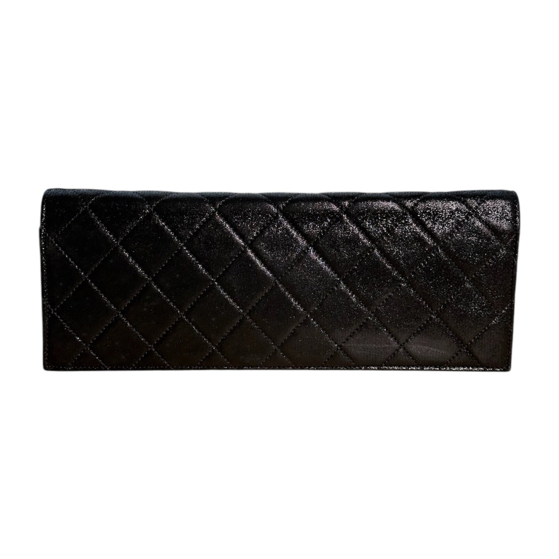 Dazzle with this CC black quilted iridescent calfskin strass long clutch, complete with striking silver-toned hardware. Feel luxurious and confident as you carry your essentials in style. Add elegance to any outfit with this timeless piece.