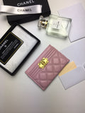 CHANEL BOY CARD HOLDER 11.2 BABY PINK CALFSKIN GOLD ICON