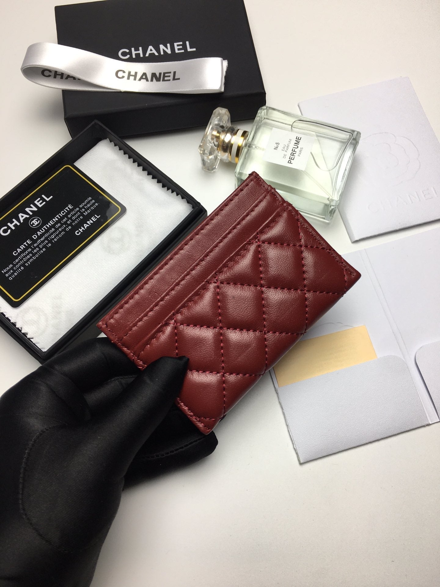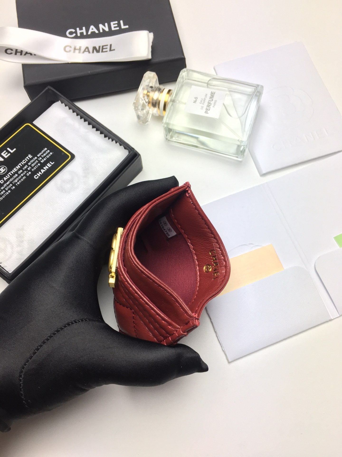 CHANEL BOY CARD HOLDER 11.2 GARNET CALFSKIN GOLD ICON