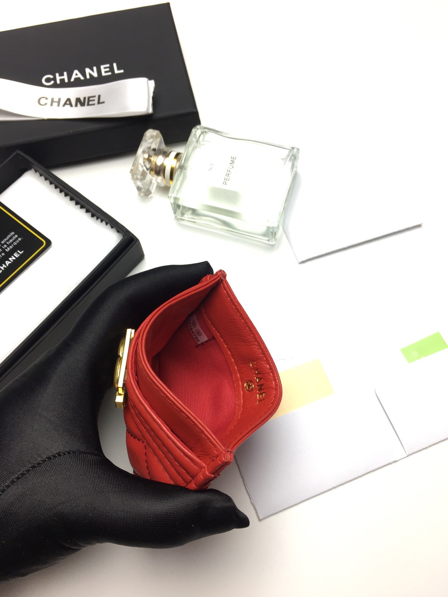 CHANEL BOY CARD HOLDER 11.2 RED CALFSKIN GOLD ICON