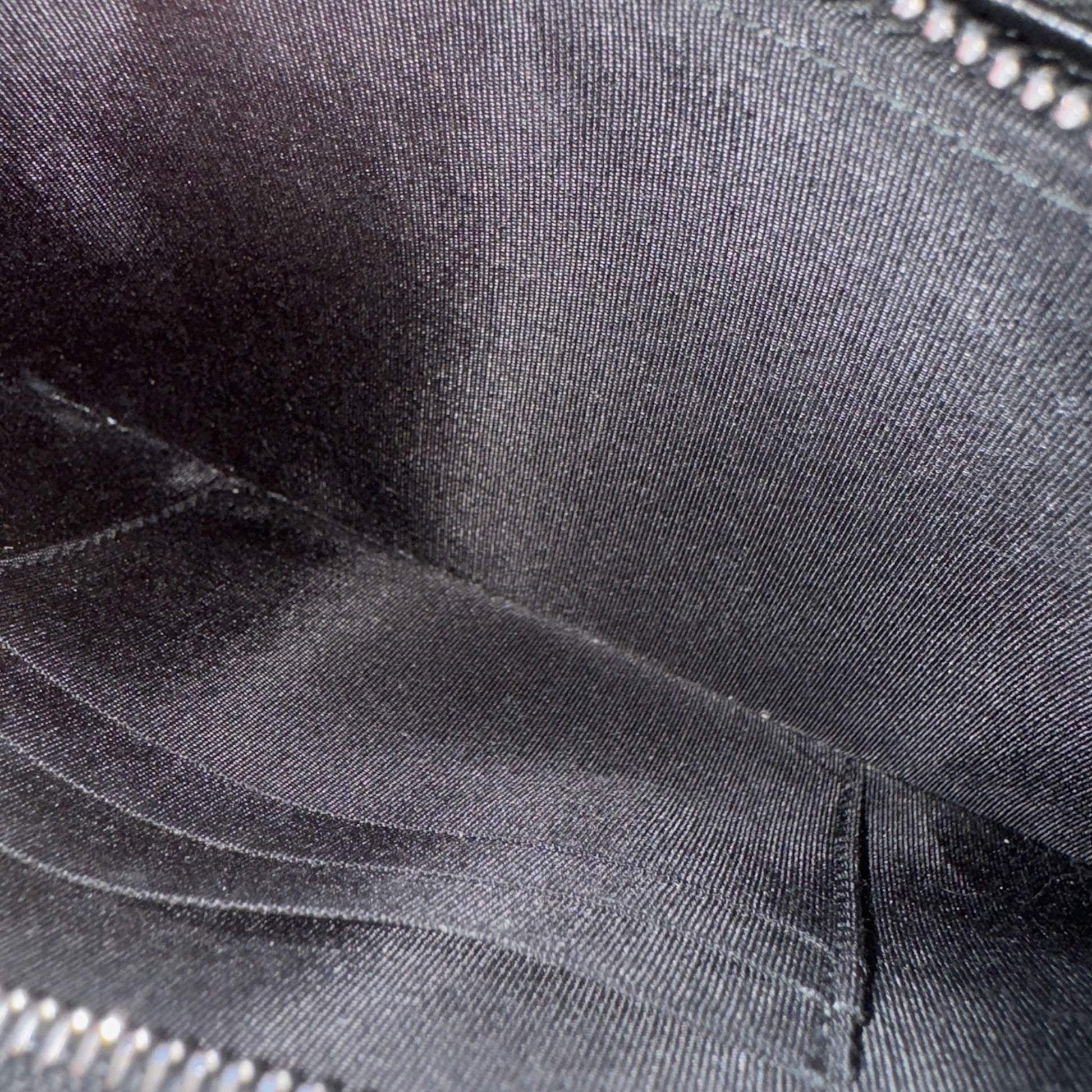 This clutch is crafted from calfskin, offering a luxurious feel. It features a chevron quilted design, adding a touch of elegance. The bag includes a chain shoulder strap for versatile wear.