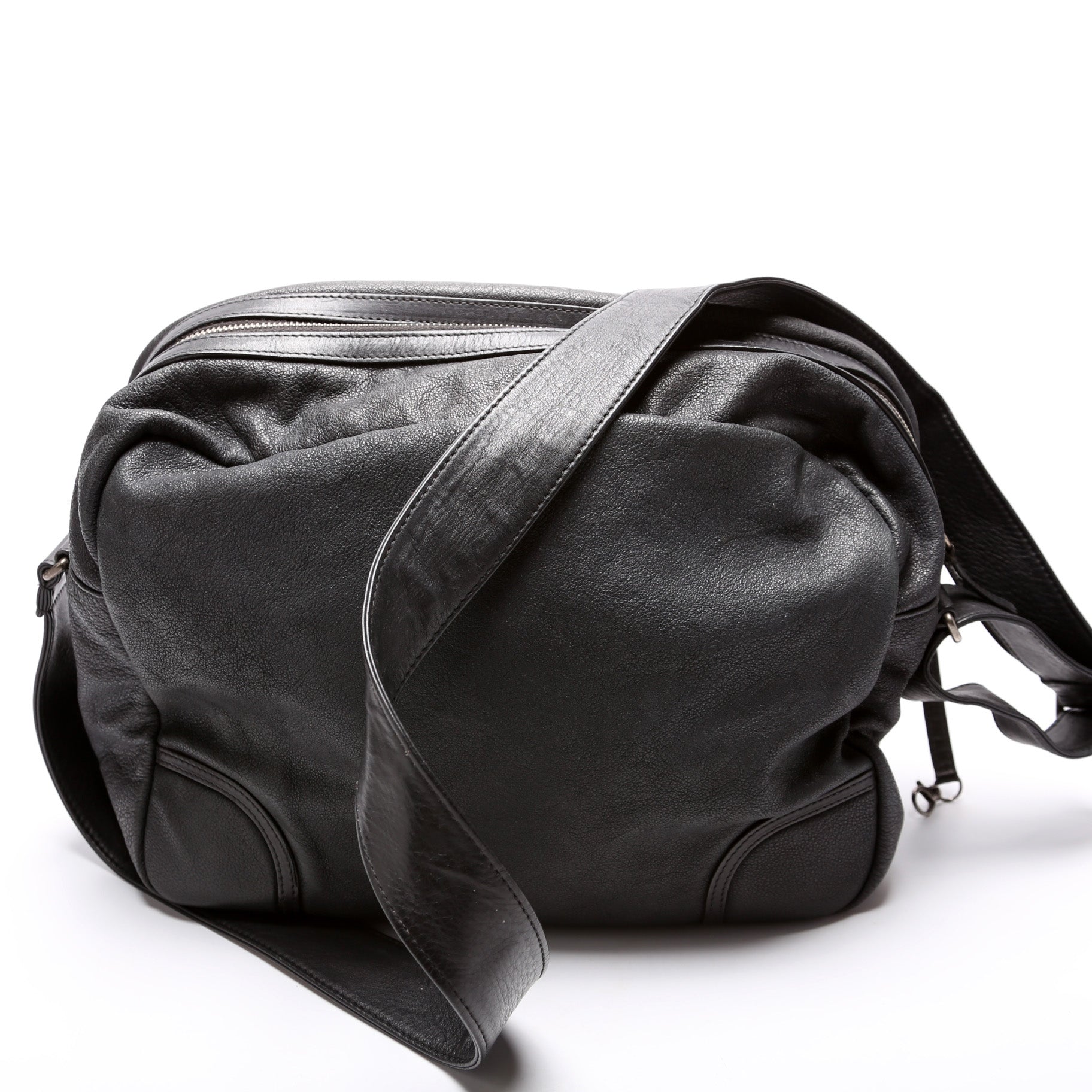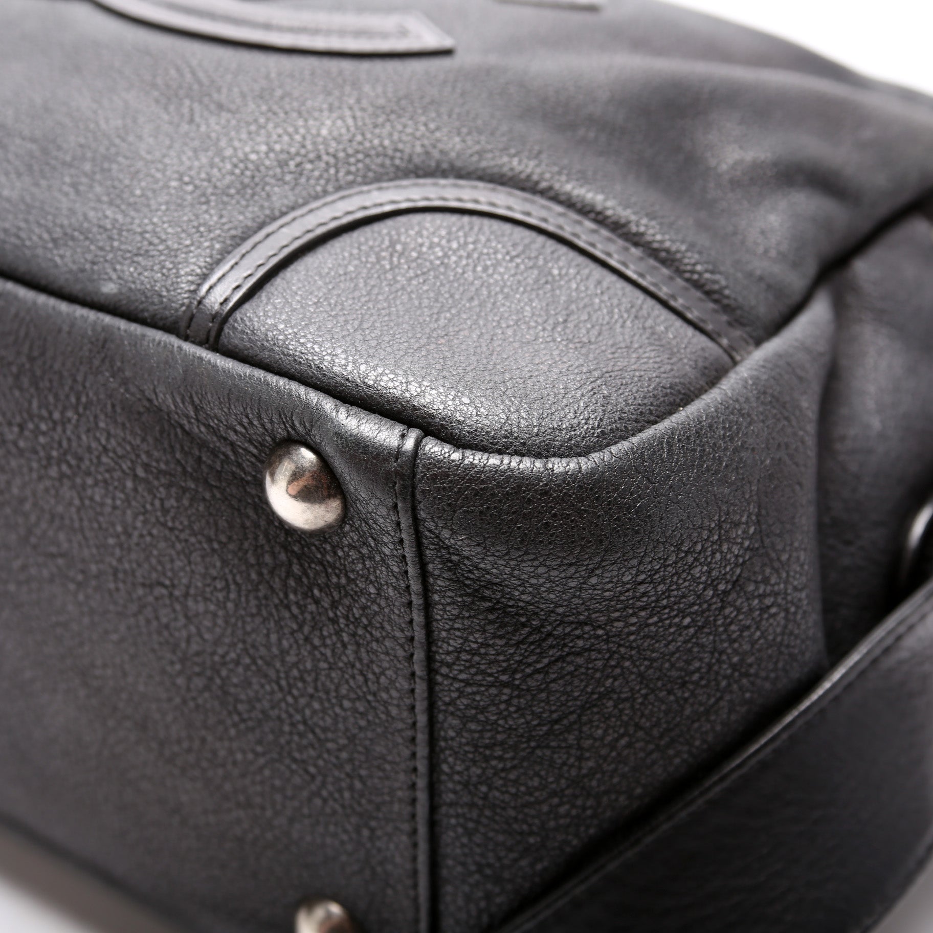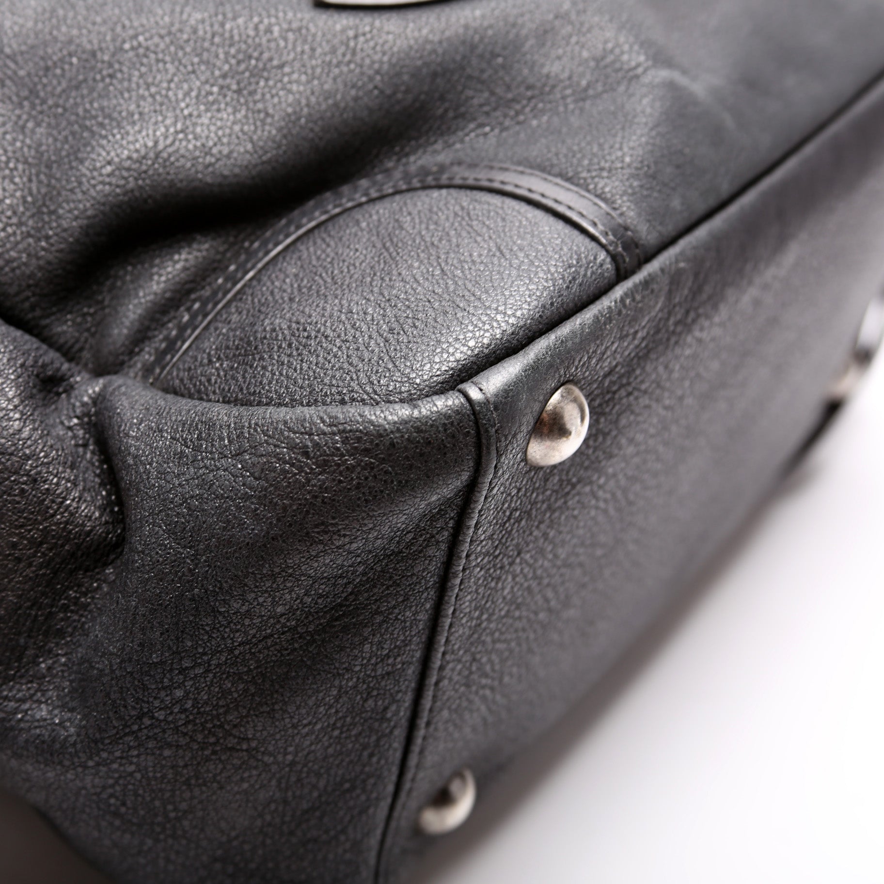 Exterior: The exterior leather shows minor scuffs and discoloration throughout.
