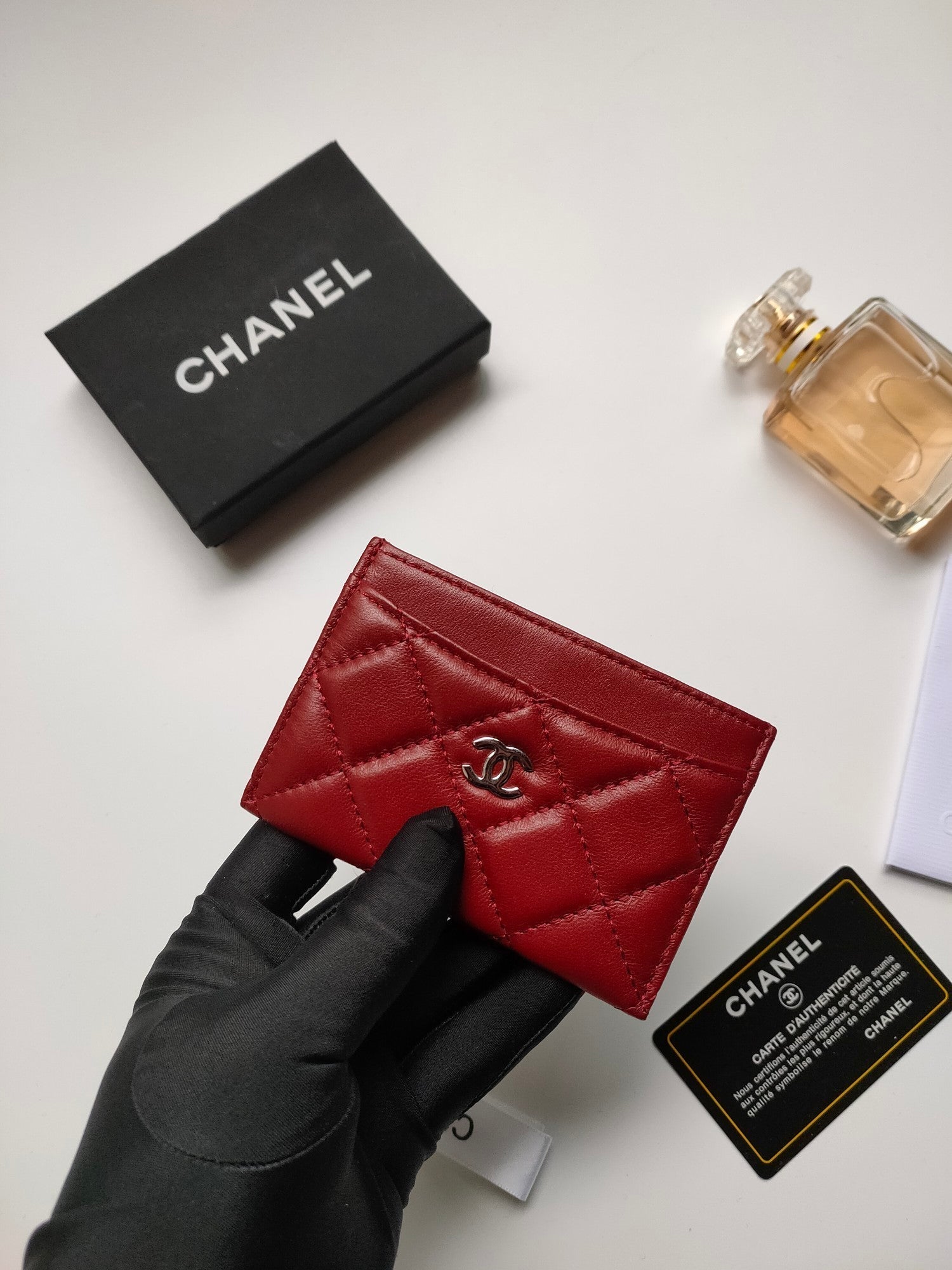 CHANEL CARD HOLDER 11.2 CRIMSON CALFSKIN GOLD ICON
