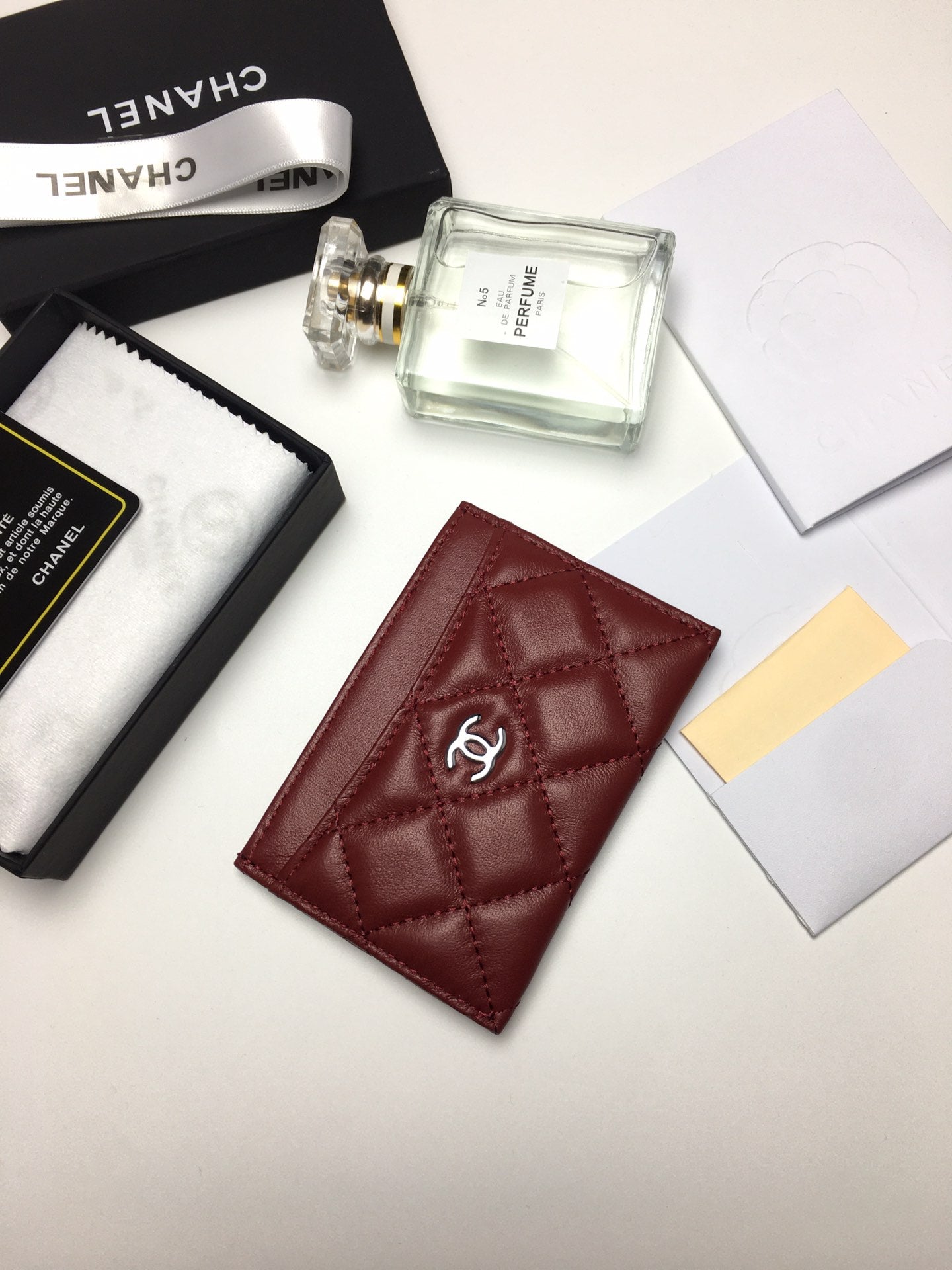CHANEL CARD HOLDER 11.2 GARNET CALFSKIN SILVER ICON