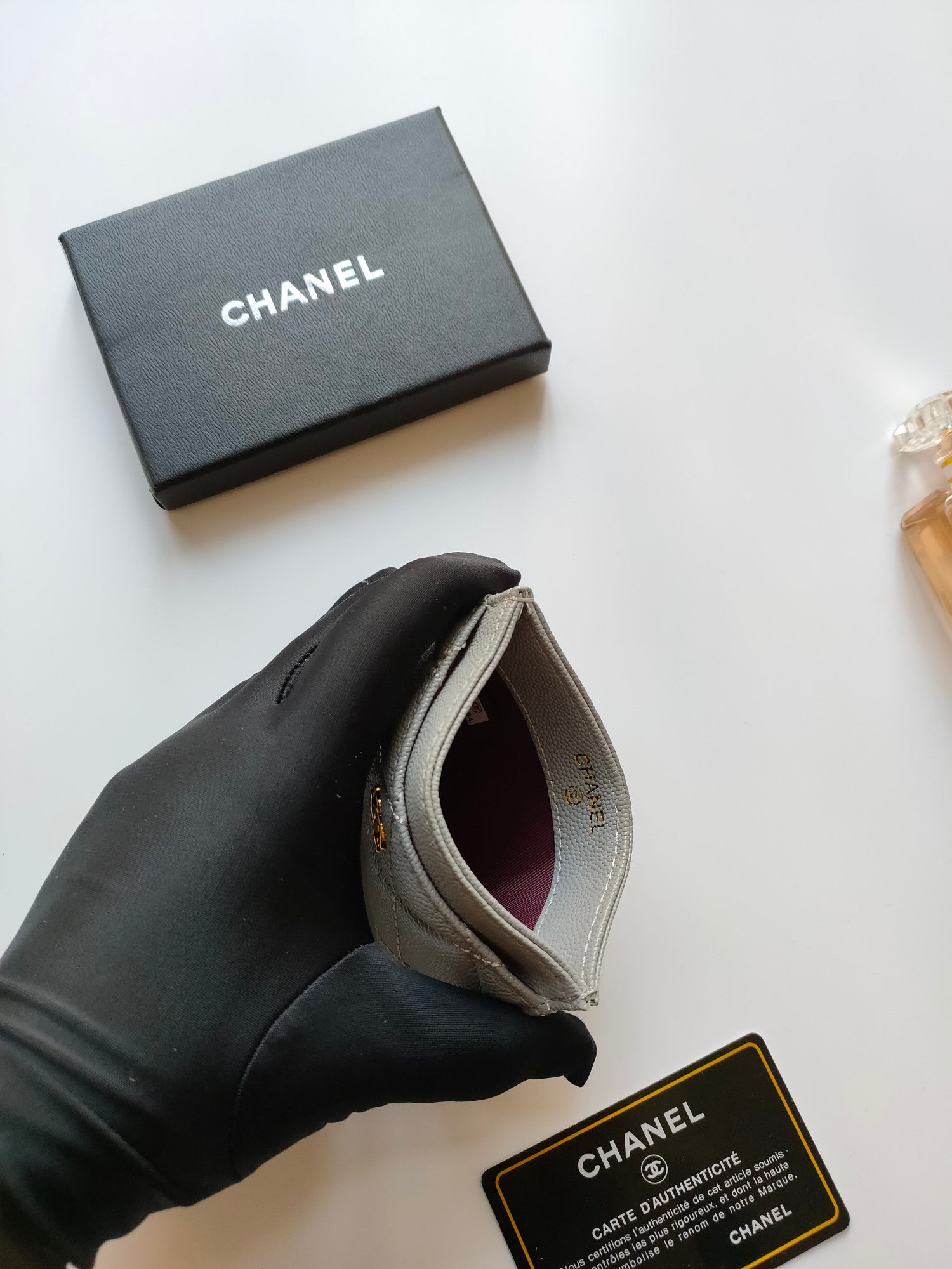 CHANEL CARD HOLDER 11.2 GRAY GRAINED CALFSKIN GOLD ICON