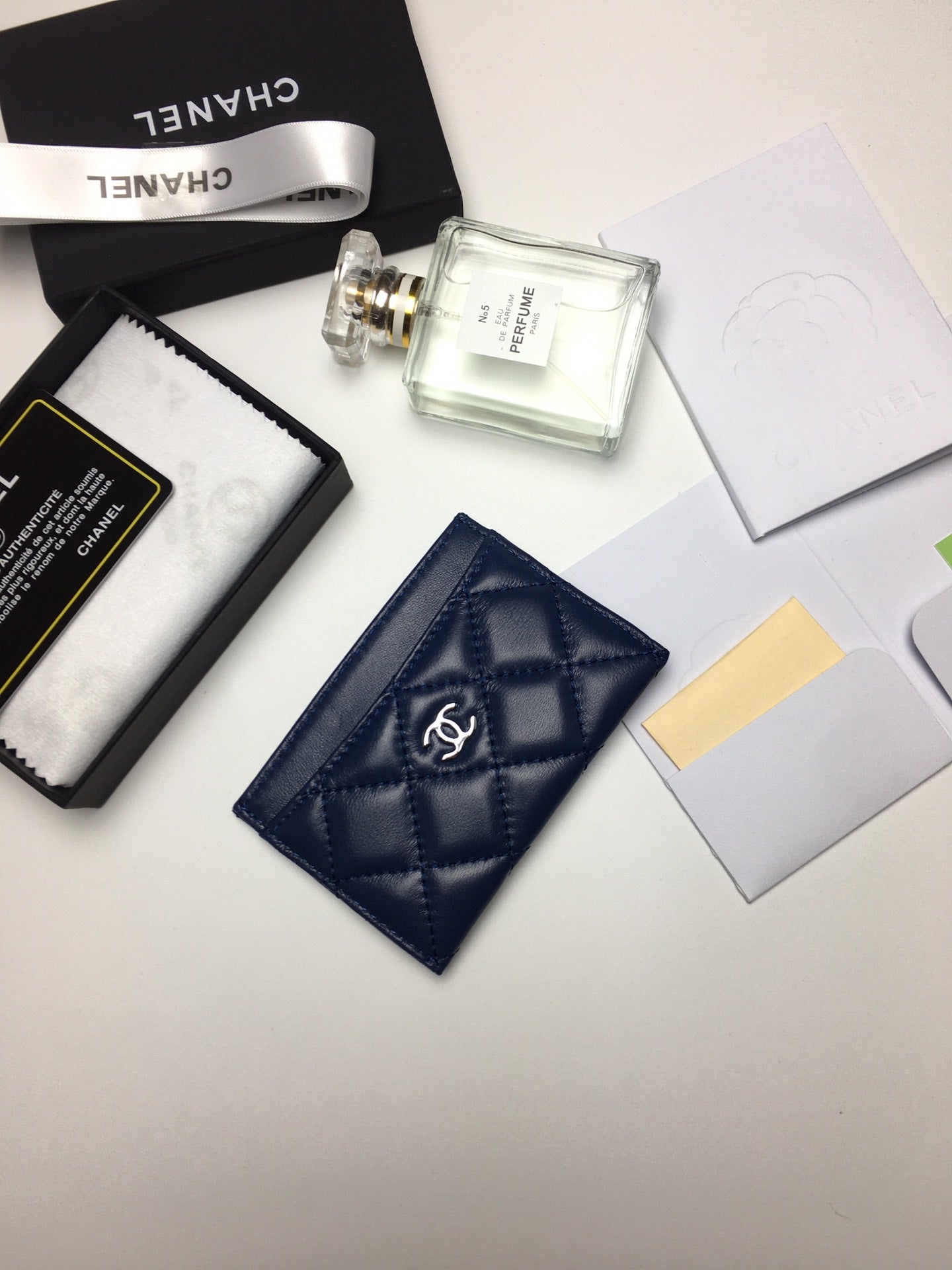 CHANEL CARD HOLDER 11.2 NAVY CALFSKIN SILVER ICON