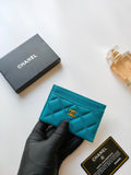 CHANEL CARD HOLDER 11.2 SAPPHIRE GRAINED CALFSKIN GOLD ICON