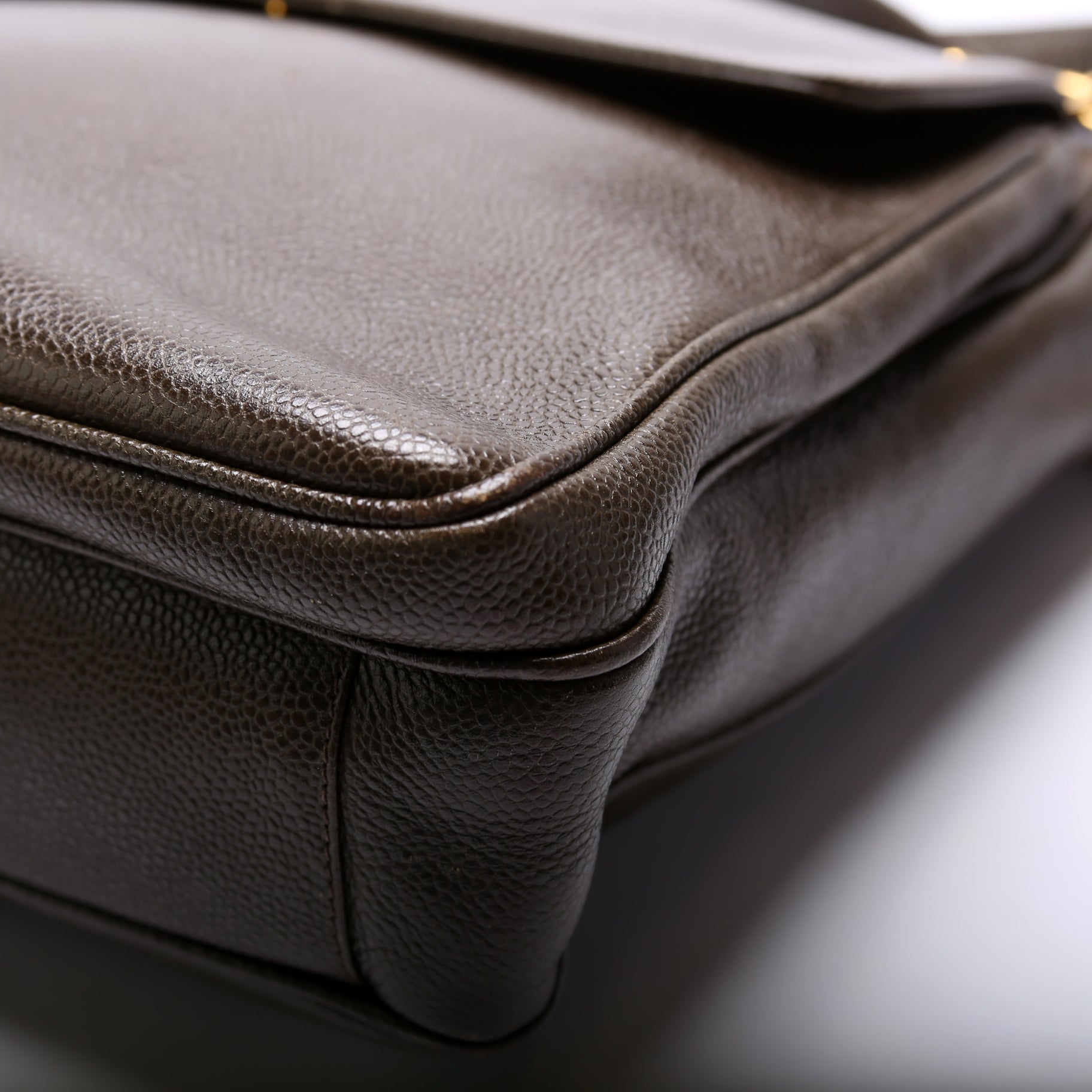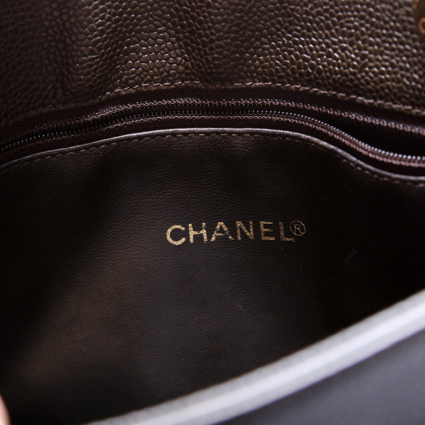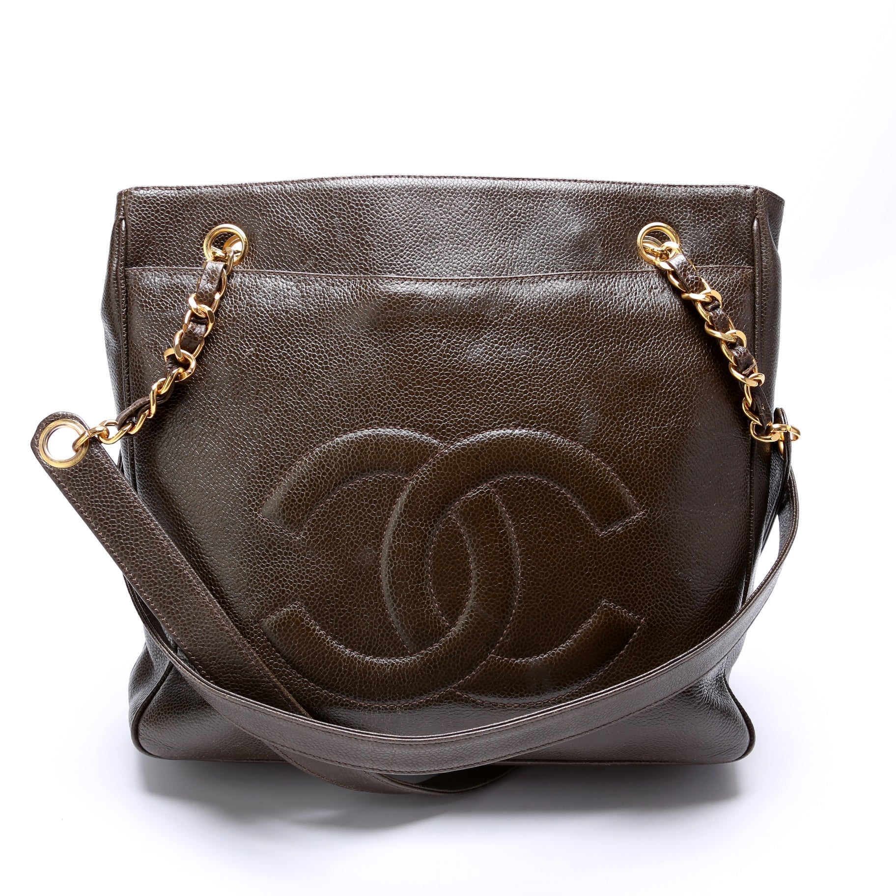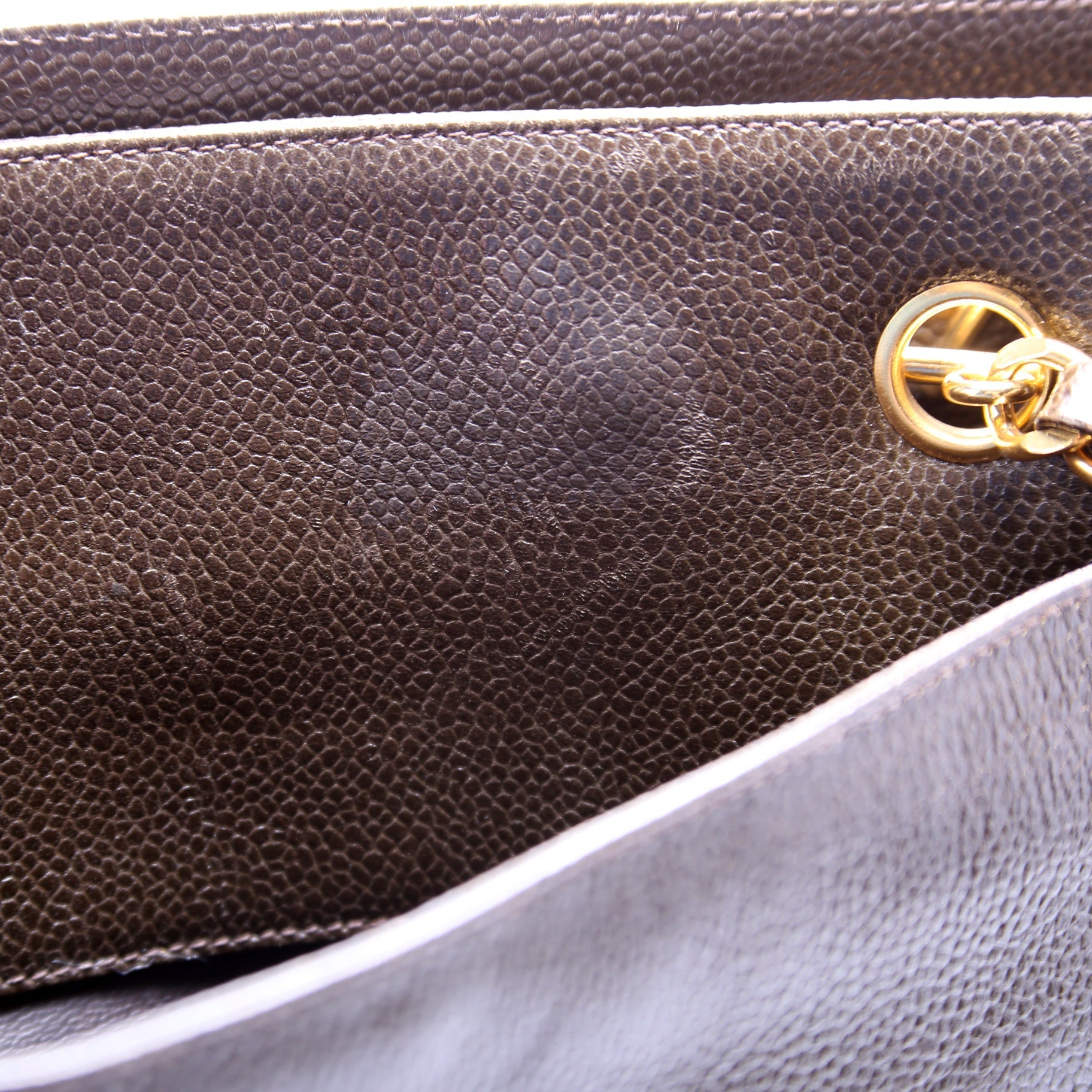 This Chanel Vintage CC Double Pocket Shopping Tote Caviar is d 100% . The exterior is in the classic caviar leather.